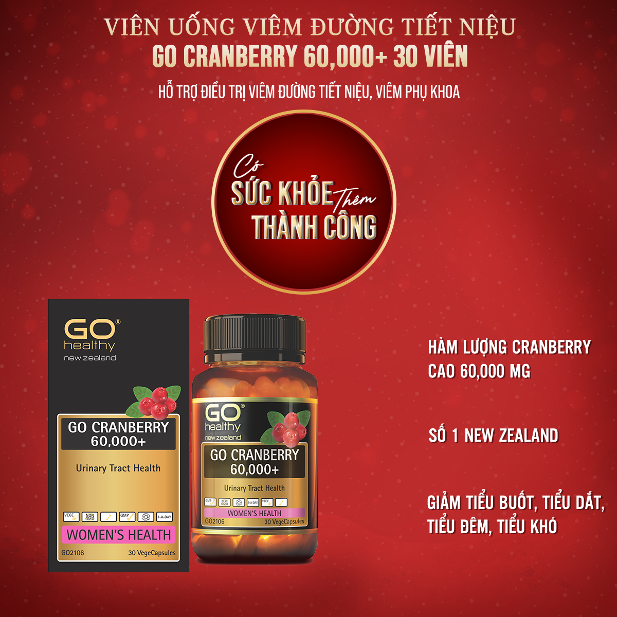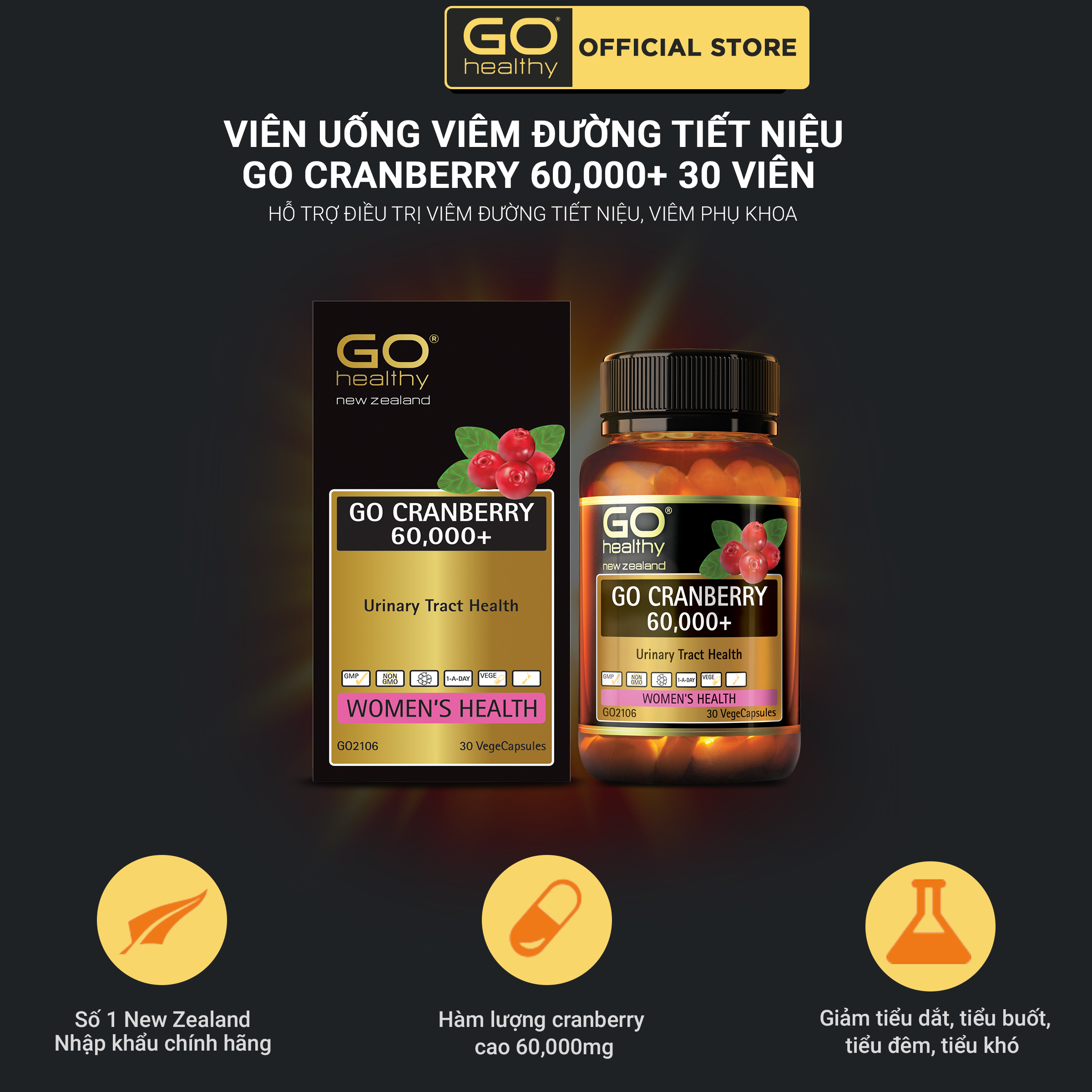 ✨GO CRANBERRY 60,000+ 30 viên - Viên uống viêm đường tiết niệu nhập khẩu chính hãng GO Healthy New Zealand