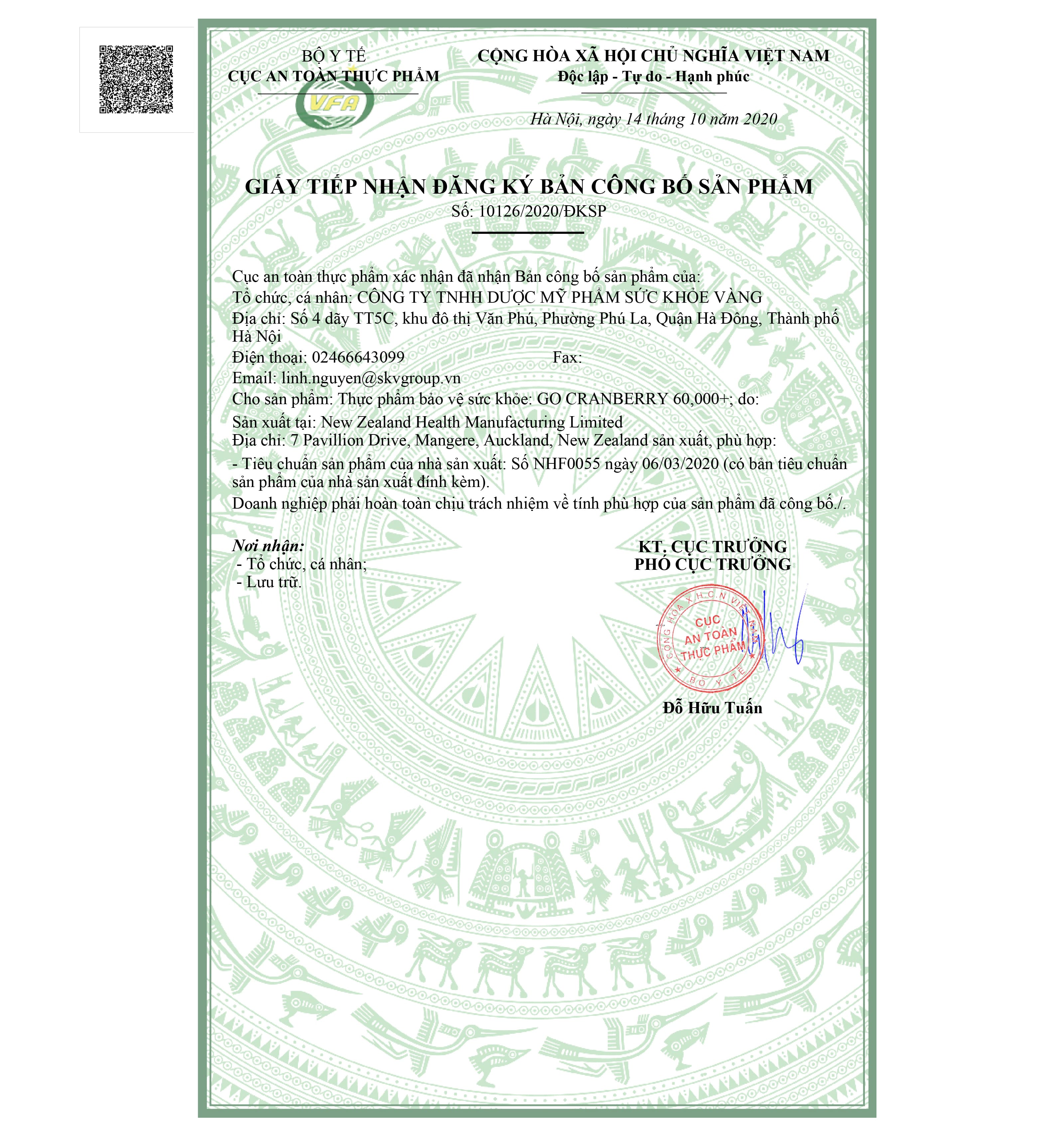 - Cần tư vấn của chuyên gia y tế nếu có phản ứng với bất kỳ thành phần nào của sản phẩm. BẢO QUẢN: ở nơi khô ráo, ở nhiệt độ dưới 30oC, tránh tiếp xúc với ánh nắng và giữ ở môi trường khô ráo. Tránh xa tầm với của trẻ em HẠN DÙNG: 36 tháng kể từ ngày sản xuất. Hạn sử dụng được ghi ở trên hộp. NHÃN MỚI GO CRANBERRY 60,000+ 30 viên THÔNG TIN VỀ GO HEALTHY NEW ZEALAND GO Healthy là thương hiệu thực phẩm bảo vệ sức khỏe dẫn đầu New Zealand và được người dân New Zealand bình chọn là sản phẩm chăm sóc sức khỏe được ưa thích nhất trong 8 năm liên tục (theo số liệu cập nhật đến 31/12/21 của IRI-Aztec MarketEdge Pharmacy [#1 ranked brand] Value Growth % MAT) GO Healthy cung cấp 10 dòng sản phẩm chăm sóc sức khỏe khác nhau, với hơn 200 mặt hàng giúp bảo vệ toàn diện gia đình bạn. Năm 2021, lần thứ 8, GO Healthy vượt qua các thương hiệu thực phẩm bảo vệ sức khỏe nổi tiếng khác trên thế giới như Berocca, Centrum, Clinicians, Healtheries, Nature’s Way, Nutralife, Red Seal và Thompson’s để đứng số 1, đạt điểm tuyệt đối ở các tiêu chí: (1) Mức độ hài lòng tổng thể (2) Hiệu quả sản phẩm (3) Giá trị đích thực (4) Dễ sử dụng