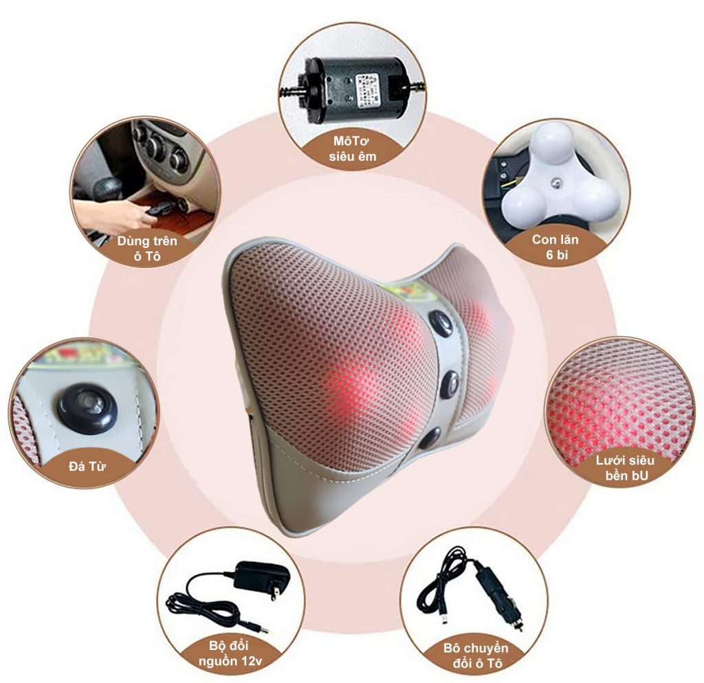 Gối Massage Hồng Ngoại 20 bi- Phiên Bản 2022 - Có túi khí - mátxa Cổ, Vai, Gáy, Toàn Thân Đa Năng Hỗ Trợ Giảm Đau Nhức Hiệu Quả An Toàn Khi Dùng Thích Hợp