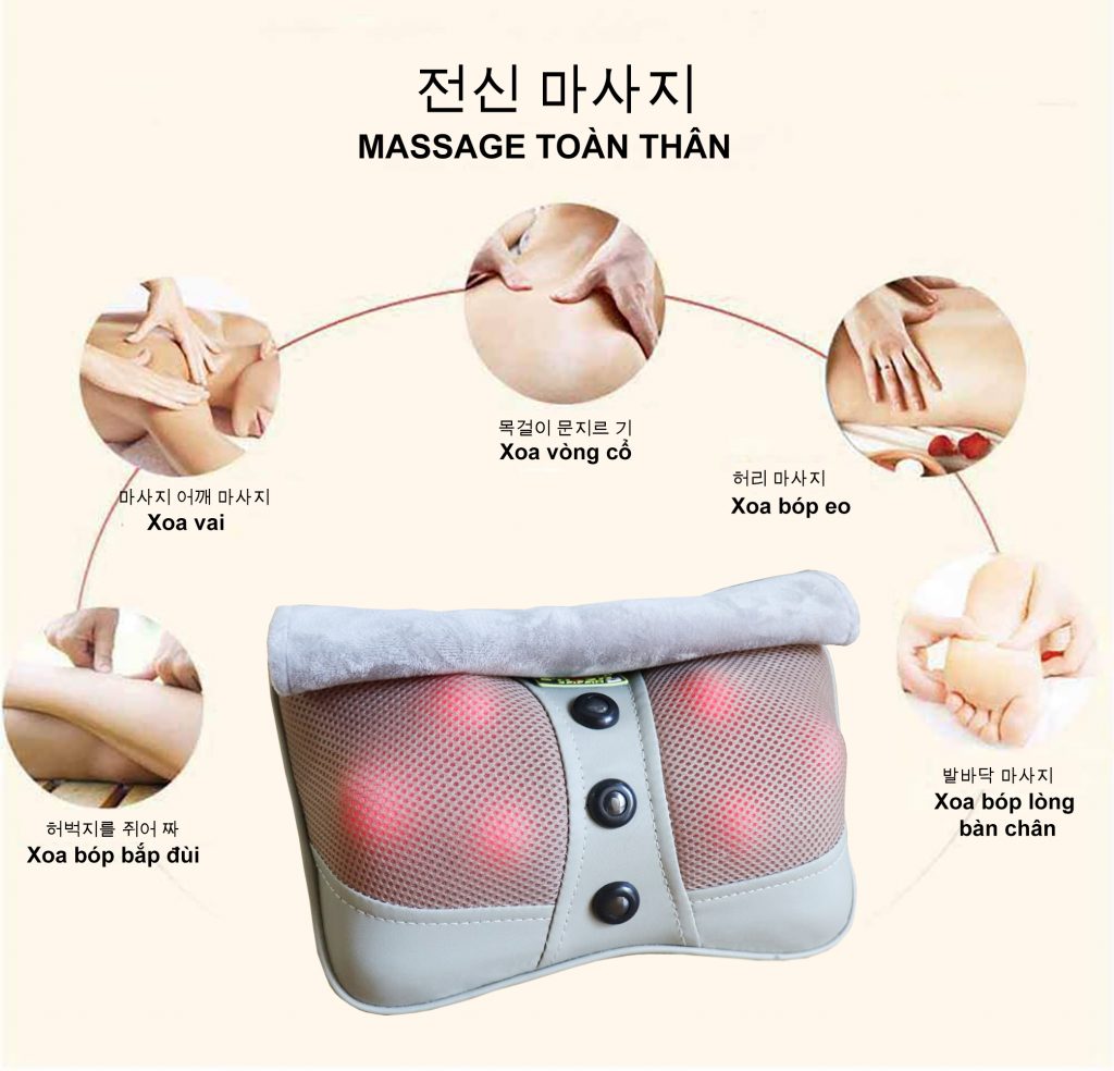 Gối massage hồng ngoại 6 bi AYS Hàn Quốc - Bảo Hành 5 Năm Chính Hãng
