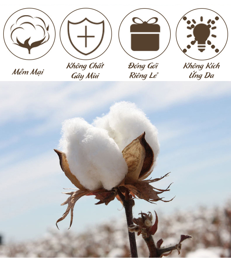 - Sản phẩm không rã bông thích hợp cho người lớn, trẻ nhỏ, thai phụ, người có làn da mẫn cảm đều có thể sử dụng được
