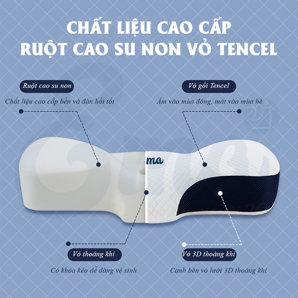 ✨Gối cao su non công thái học chống đau vai ngáy, ngủ ngáy, hỗ trợ ngủ nhanh EMA- Thiết kế riêng biệt cho tư thế nằm ngửa và nằm nghiêng