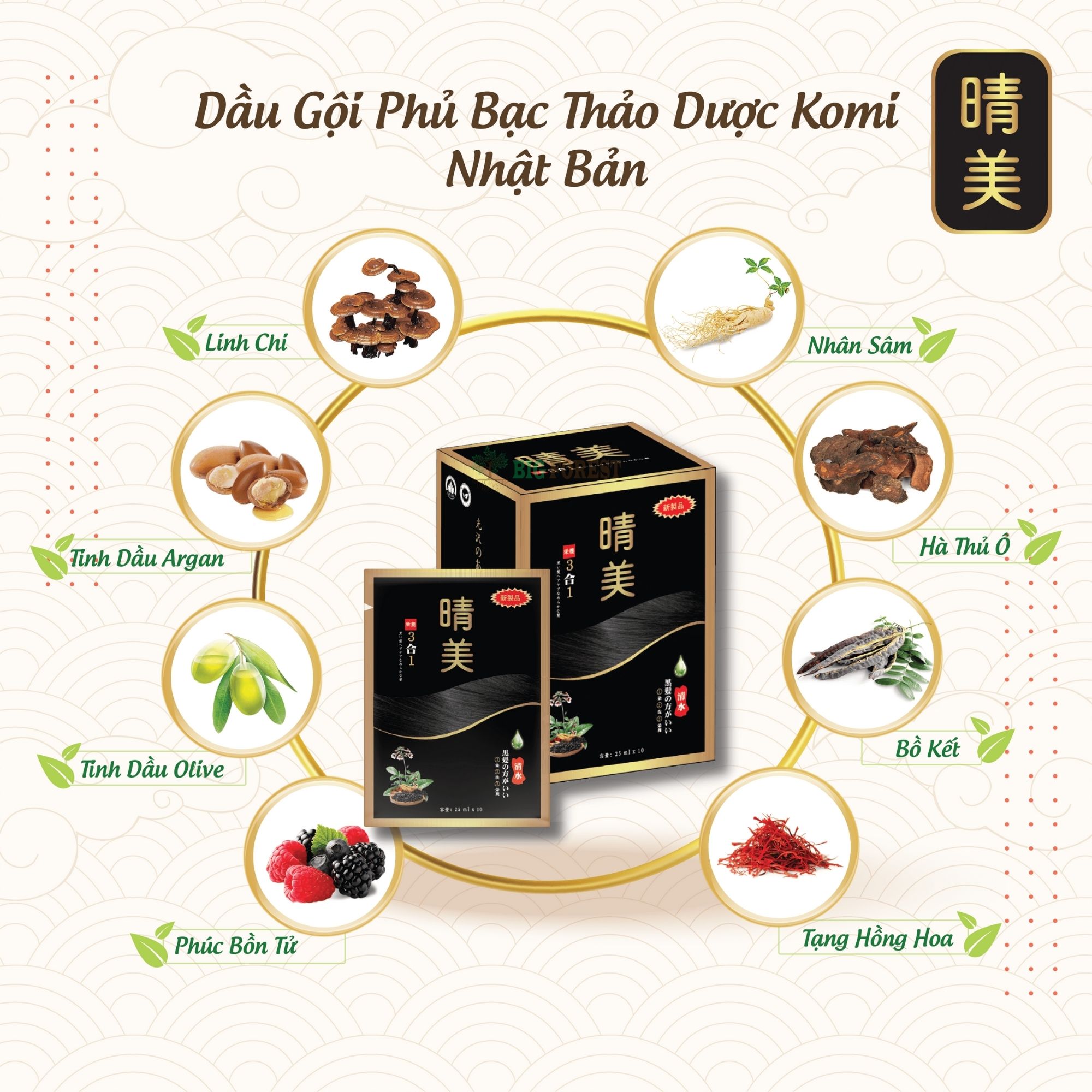 Hộp Dầu Gội Phủ Bạc Thảo Dược Komi Nhật Bản [Gói 25ml - Nâu Hạt Dẻ - Chính Hãng] Mô tả : Ưu điểm vượt trội : ✓ Không bị xơ tóc khi sử