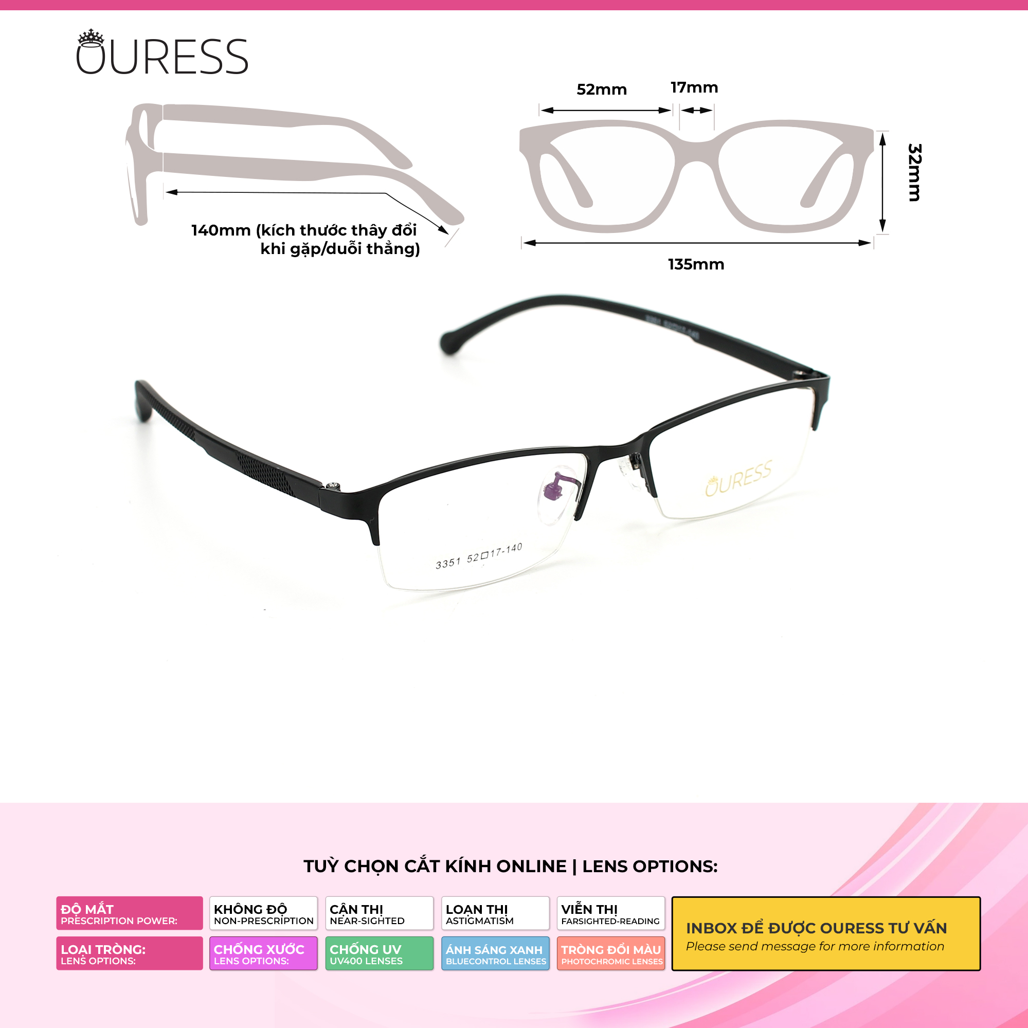 Mua tại TiktokLƯU Ý KHI MUA GỌNG & TRÒNG TẠI OURESS 1. Để đảm bảo chất lượng sản phẩm, Quý khách vui lòng cung cấp cho Ouress 2 thông tin quan trọng sau: + Cung cấp SỐ