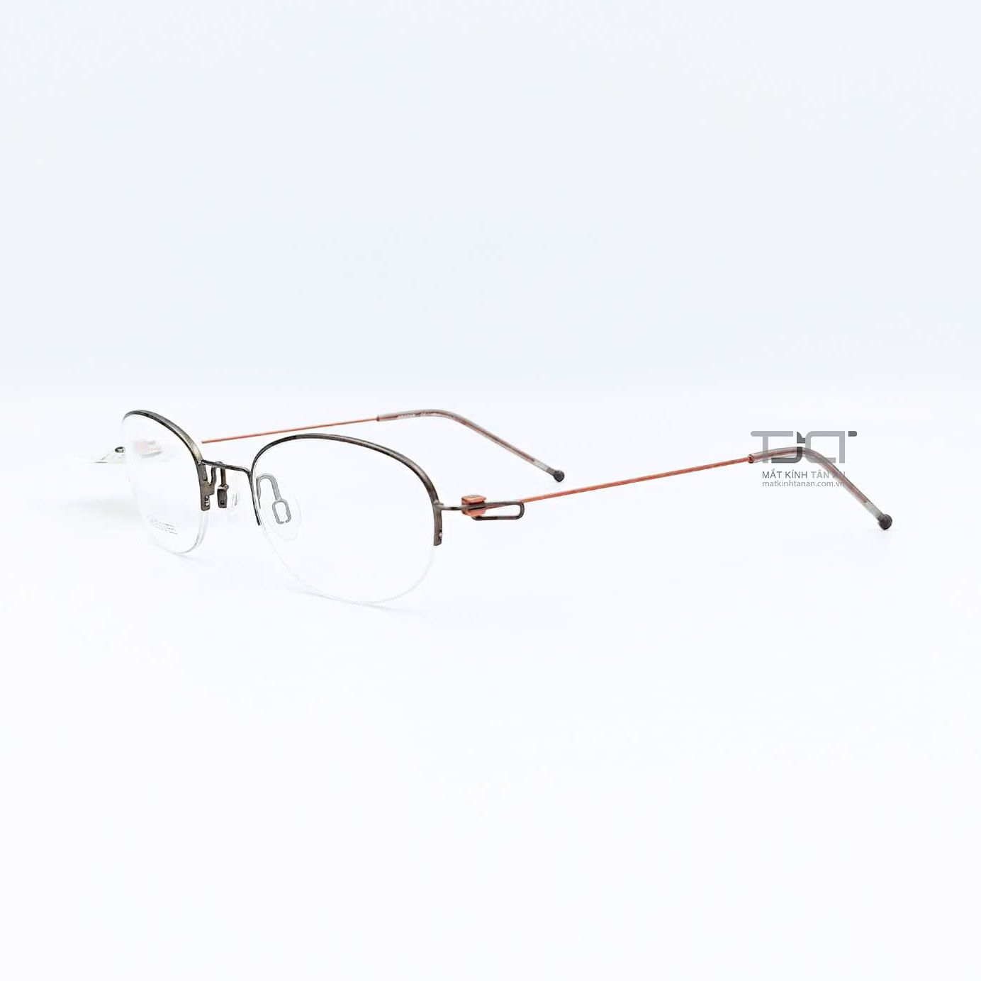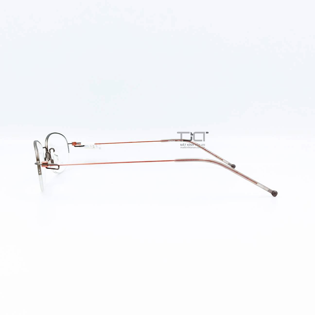- Kiểu dáng: Phom tròng kính hình bầu dục, nữa khung , xẽ cước thanh lịch, càng kính thanh kim loại mãnh