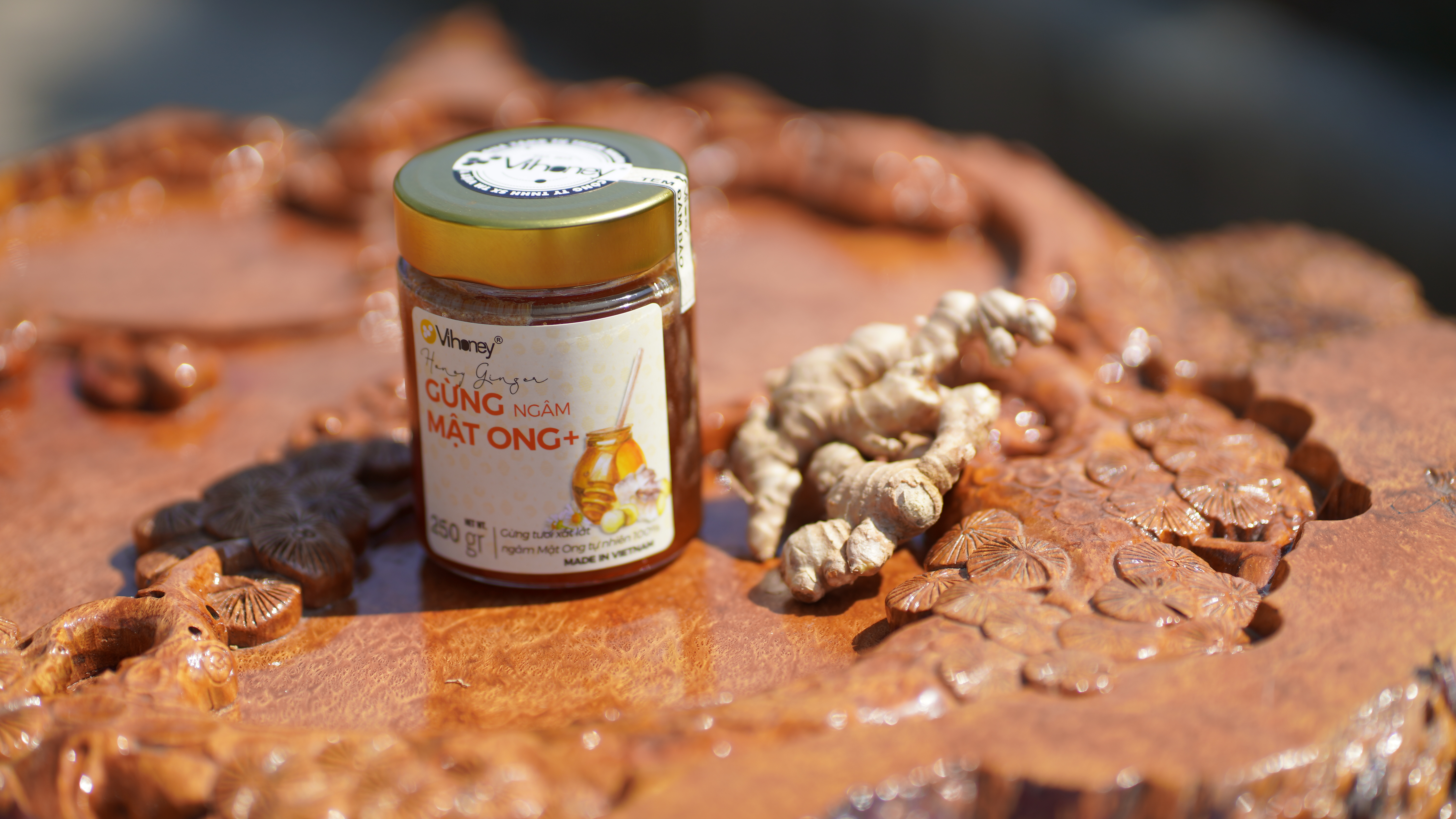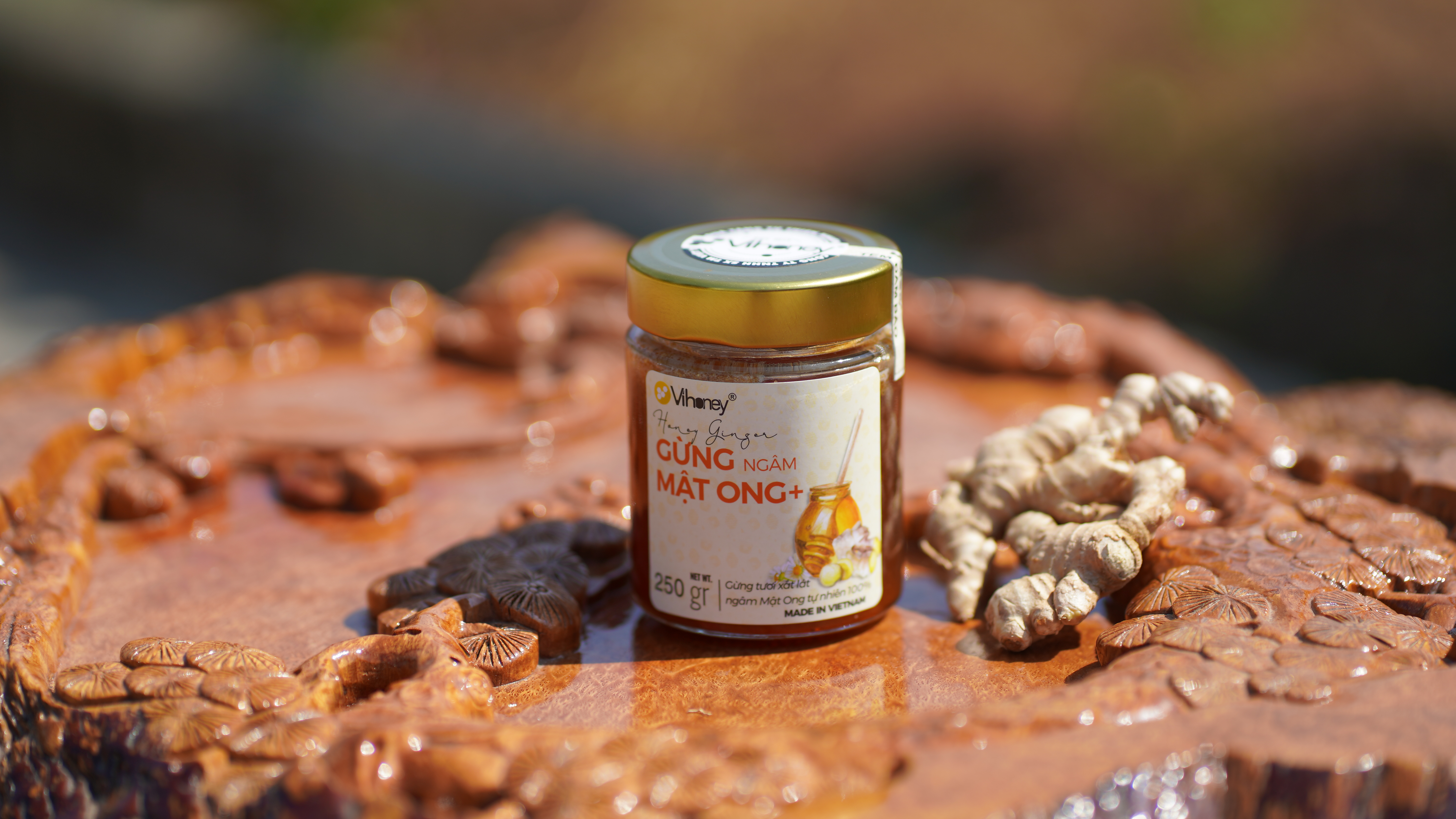 Mật ong Vihoney nguyên chất, sánh vàng, giàu dưỡng chất và có tính kháng khuẩn tự nhiên. Khi kết hợp lại, gừng và mật ong tạo nên một thức uống vừa thơm ngon vừa tốt cho sức khỏe: