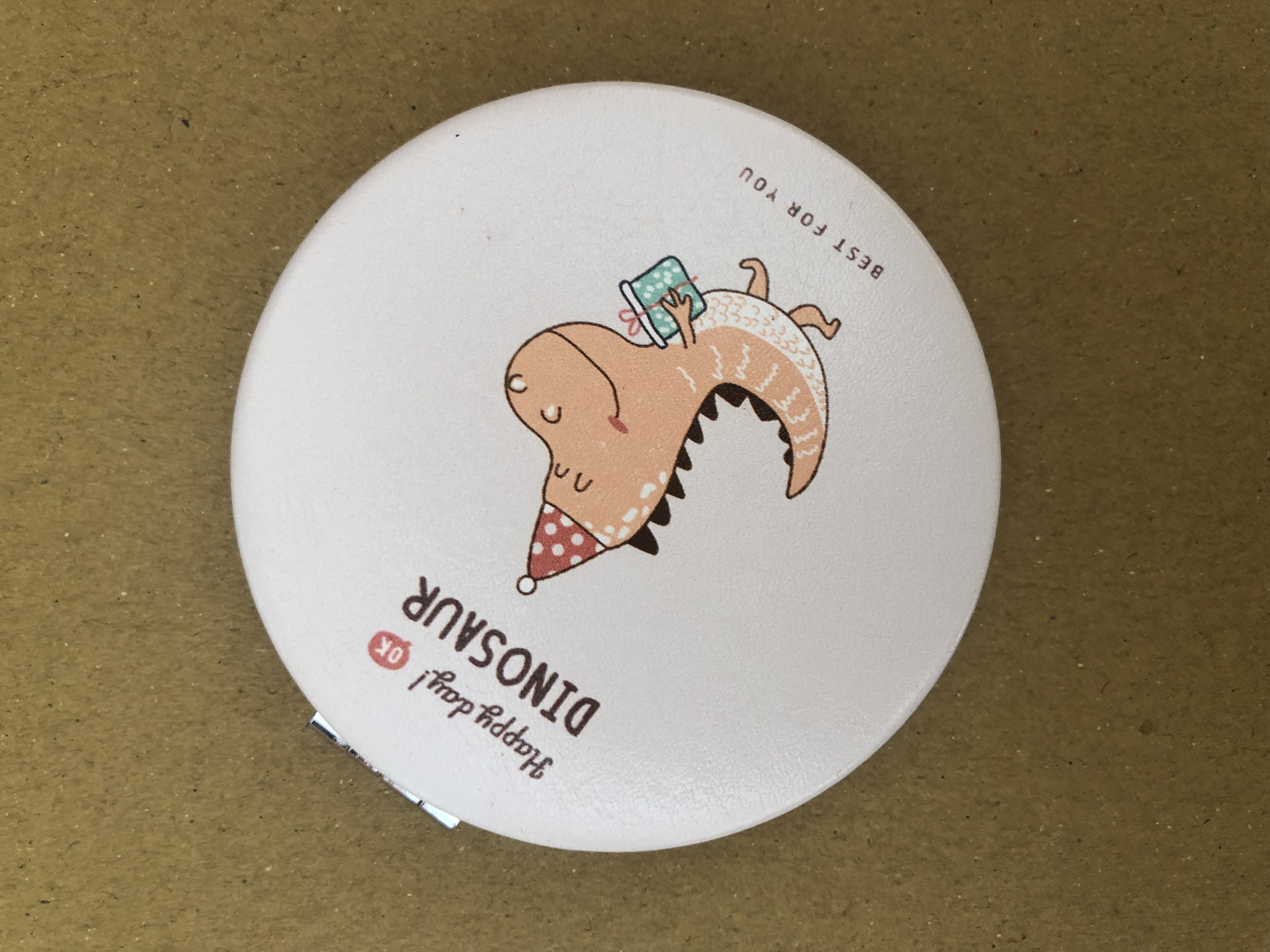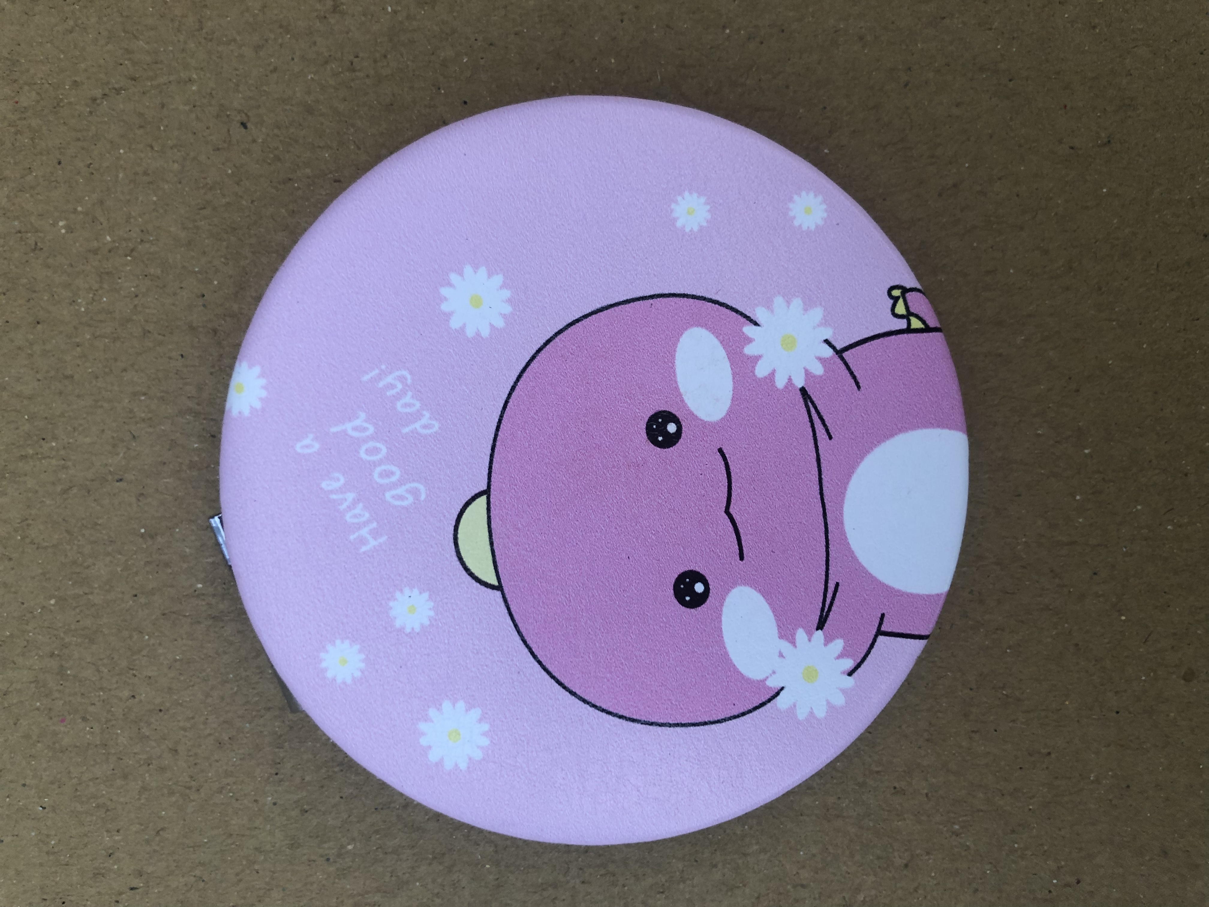 - Gương hình tròn có dạng nắp bật được trang trí bằng những hình ảnh, chi tiết hoạt hình thú vị, những dòng chữ mang ý nghĩa đáng yêu, màu sắc bắt mắt hẳn sẽ rất được lòng các chủ sở hữu.