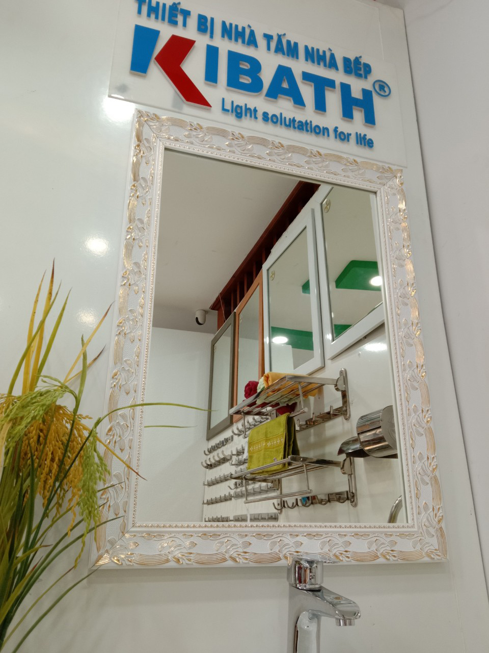 ✨Gương soi Kibath khung màu trắng bảng 6 phân họa tiết vàng KT 60x80 cm, KB-129