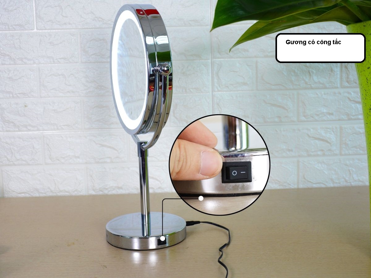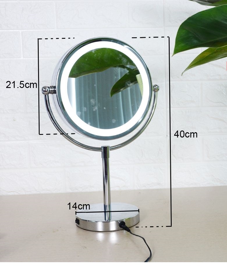 Gương trang điểm để bàn LED, Crom, phóng đại zoom x3, 2 mặt xoay siêu nét Minh House Mô tả gương trang điểm để bàn Crom phóng đại zoom x3, 2 mặt xoay siêu nét