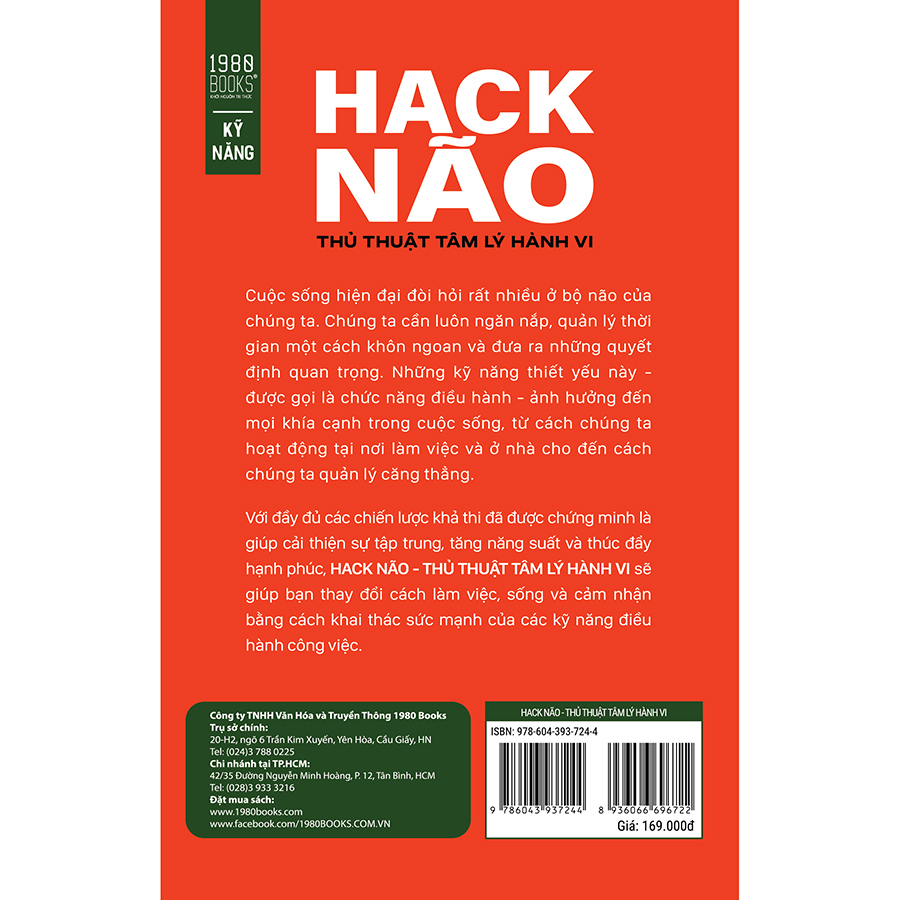Cuộc sống hiện đại đòi hỏi rất nhiều ở bộ não của chúng ta. Chúng ta cần luôn ngăn nắp, quản lý thời gian một cách khôn ngoan và đưa ra những quyết định quan trọng. Những kỹ năng thiết yếu này - được gọi là chức năng điều hành - ảnh hưởng đến mọi khía cạnh trong cuộc sống, từ cách chúng ta hoạt động tại nơi làm việc và ở nhà cho đến cách chúng ta quản lý căng thẳng. Được viết bởi nhà tâm lý học lâm sàng - Tiến sĩ Lara Honos-Webb, HACK NÃO - THỦ THUẬT TÂM LÝ HÀNH VI đưa ra những hướng dẫn và chiến lược mạnh mẽ giúp bạn làm việc thông minh hơn, cảm thấy tốt hơn và đạt được nhiều mục tiêu hơn. Cuốn sách sẽ giúp bạn: