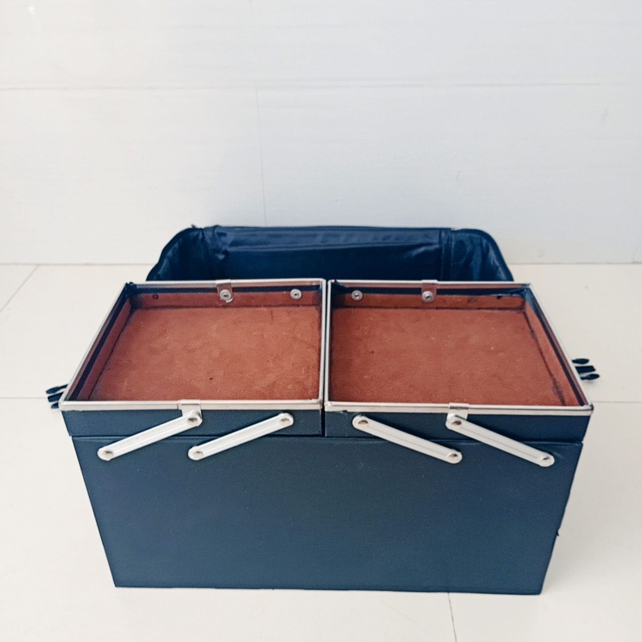 Bên trong các khay măm lót nhung cao cấp, bọc viền 4 cạnh cứng cáp, sang trọng, giúp tăng thời gian sử dụng cốp lâu hơn so với các loại thông thường