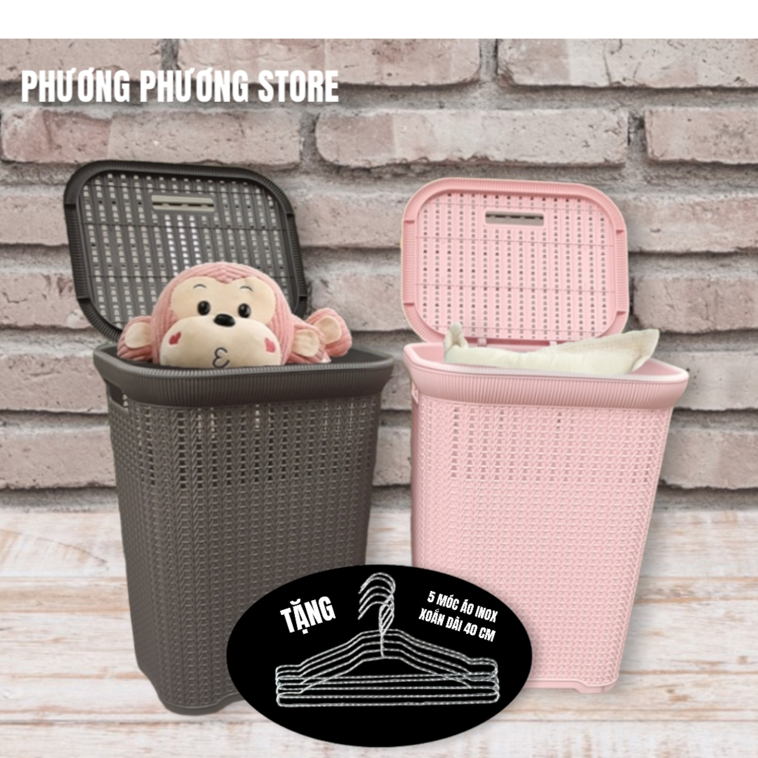 ✨( HÀNG CAO CẤP ) Giỏ đựng đồ quần áo có nắp Hàn Quốc Kiểu Dáng Đan Mây( Tặng Sét 5 Móc áo Inox Xoắn Dài 40cm )