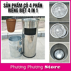 ✨( Hàng Cao Cấp ) Thùng rác inox tròn A 35, thùng rác inox gạt tàn tròn ( Tặng sọt tròn mây )