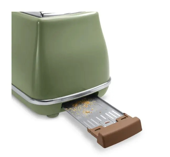 Mô Tả Sản Phẩm Máy nướng bánh mì Delonghi CTOV2103.GR thiết kế cổ điển với màu xanh rêu thu hút ánh nhìn, không chỉ nướng bánh mì mà còn rã đông, hâm nóng bánh, dễ