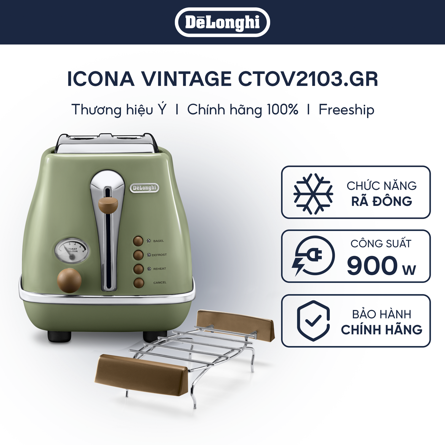 ✨[Hàng chính hãng] Máy nướng bánh mì DeLonghi Icona Vintage CTOV2103 (BG/ GR)