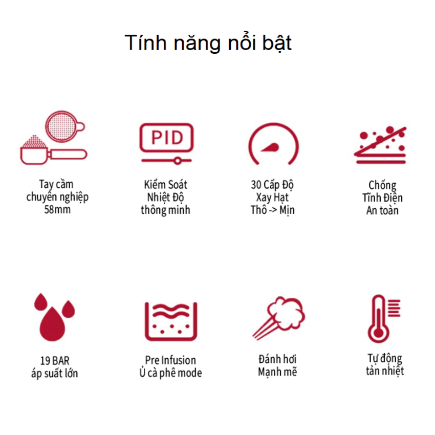 - Máy này còn có chức năng xay cà phê hạt với công nghệ xay cảm biến giúp máy có thể xay hạt được đều và đồng nhất. Bên cạnh đó, thanh nén tích hợp sẵn trong máy nhằm đảm bảo lực nén lý tưởng tạo ra những ly cà phê thơm ngon nhất. Hệ thống gia nhiệt tiên tiến "PID"