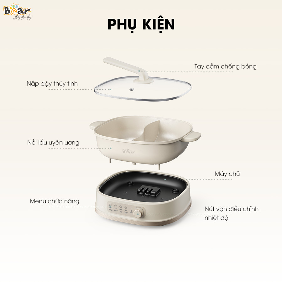 – Thiết kế thông minh: Nồi lẩu Bear có thiết kế tách rời, giúp người dùng có thể vệ sinh một cách dễ dàng. Vách ngăn ở giữa chia nồi lẩu Bear thành 2 ngăn riêng biệt, bạn hoàn toàn có thể chế biến hai món ăn cùng lúc.