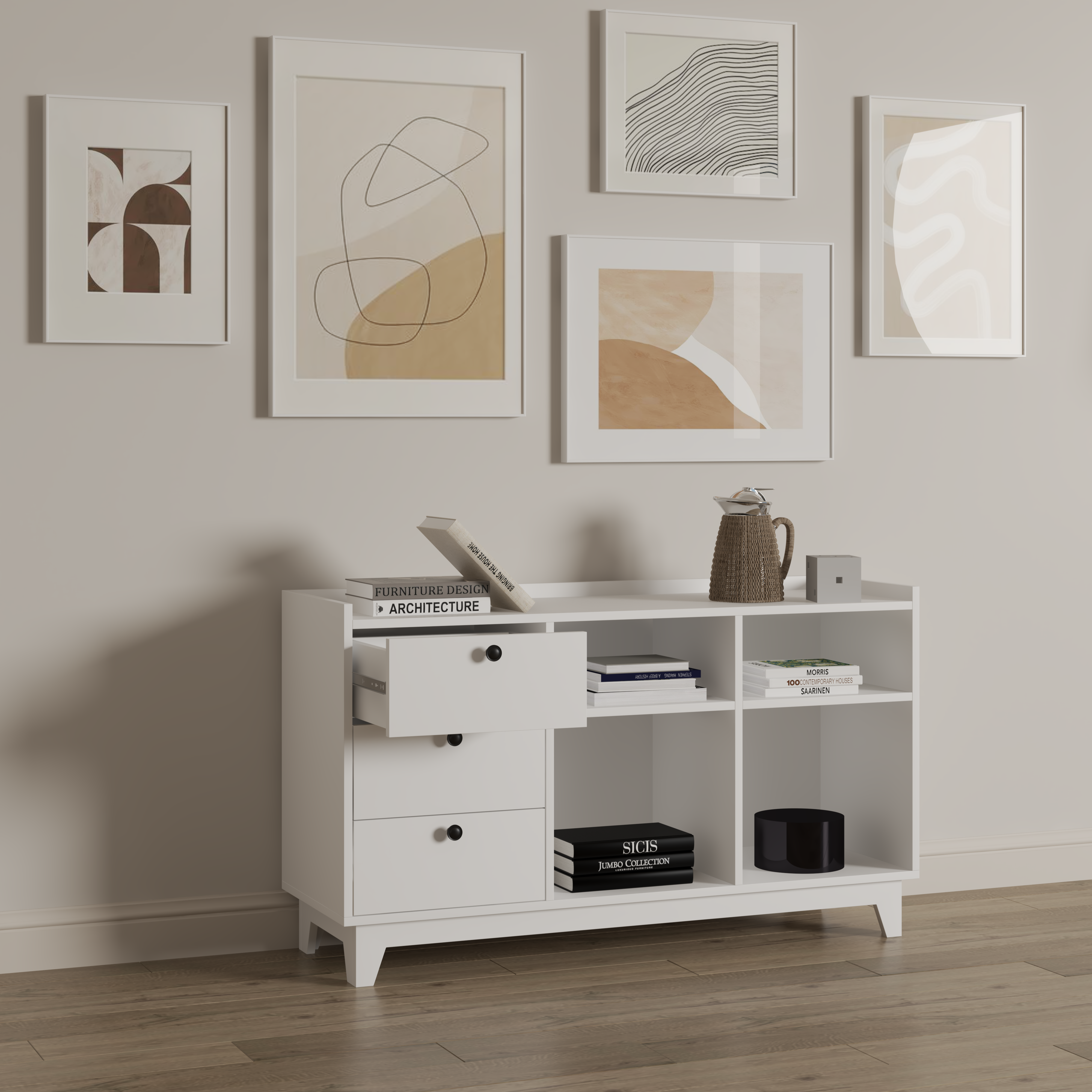 Bàn sảnh ra vào gỗ SMLIFE Cacela được thiết kế theo phong cách đơn giản vừa là nơi trang trí tranh ảnh, bình hoa và cũng là nơi để lưu trữ các vật dụng cần