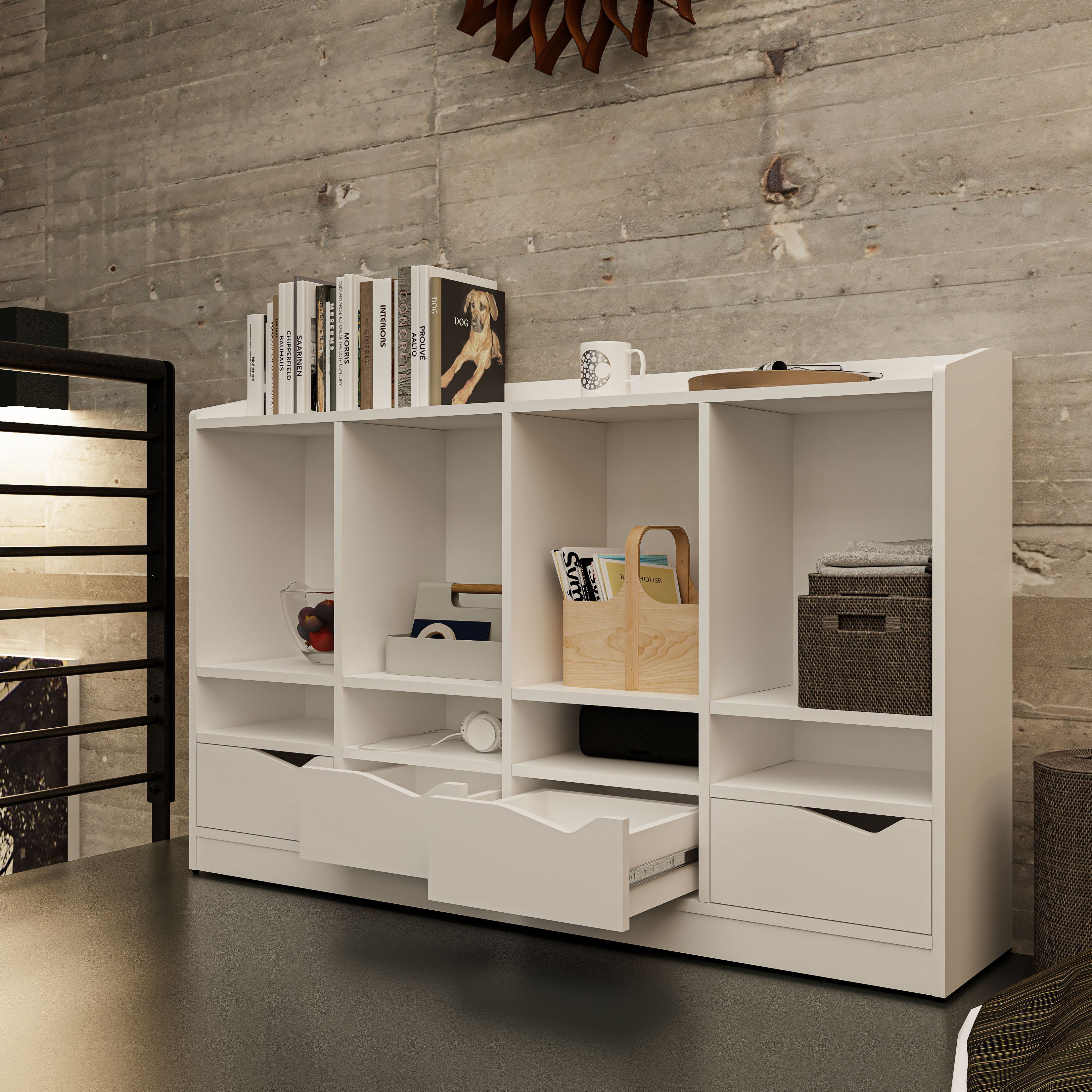 ✨[Happy Home Furniture] WINNI, Tủ lưu trữ 4 ngăn kéo , 140cm x 28cm x 86cm ( DxRxC), THK_141