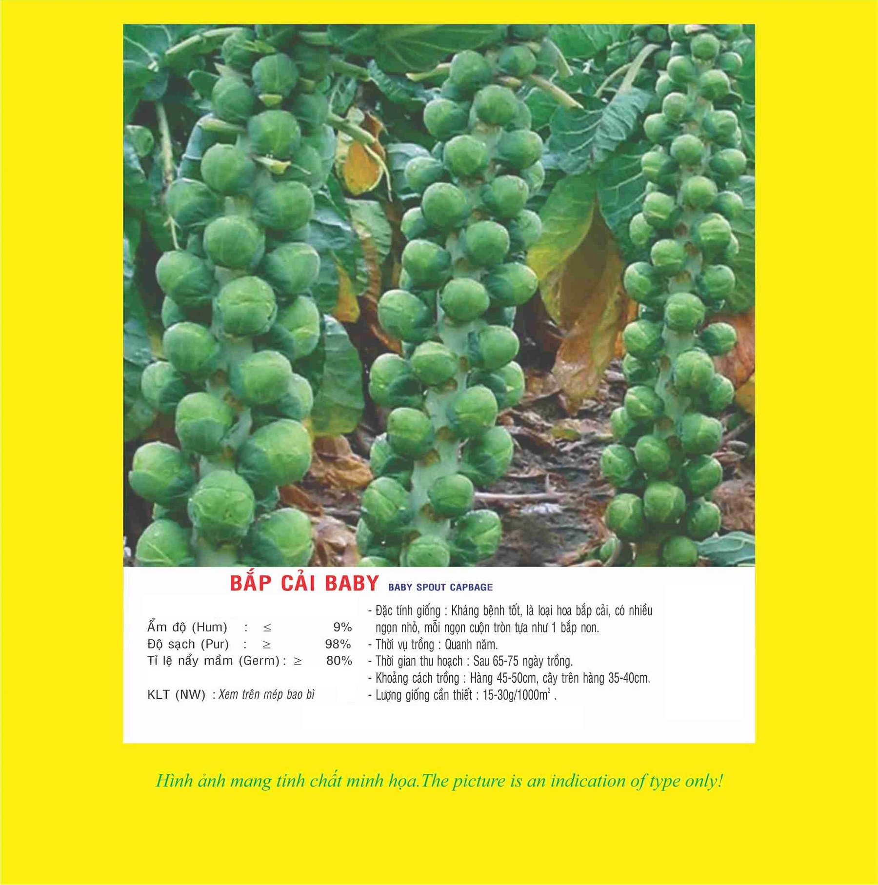 Đặc tính giống: Bắp cải baby - Giống kháng bệnh tốt, là loại hoa bắp cải có nhiều ngọn nhỏ cuộn tròn như bắp cải, da xanh nhạt.