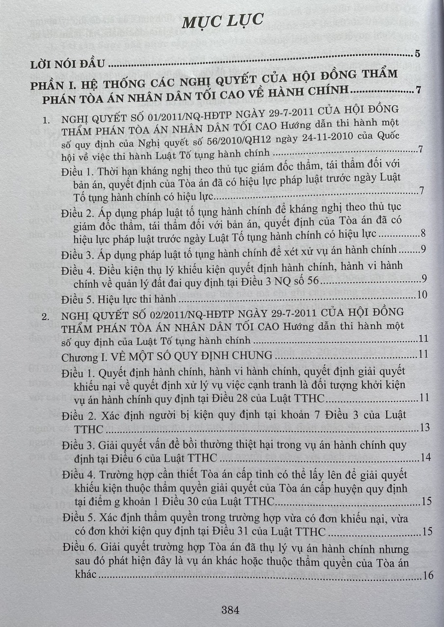 Phần I. Hệ thống các Nghị quyết của Hội đồng Thẩm phán Tòa án nhân dân tối cao về hành chính