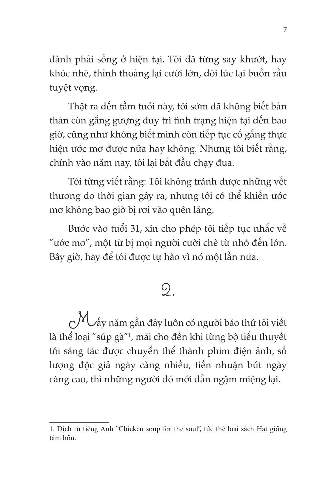 Sau 30 tuổi mới thấy nhiều áp lực, áp lực thành công, áp lực trang lứa, áp lực kinh tế… Liệu những người thất bại có thể bắt đầu lại ở độ tuổi 30? Không bao giờ là muộn để bắt đầu. Ở năm 30 tuổi, bạn không còn sung sức như hồi trẻ nhưng khi nhiệt huyết vẫn còn, niềm đam mê vẫn có, bạn hoàn toàn có thể bắt đầu. Làm những điều m.ình thích, yêu những điều m.ình làm, miễn là điều đó tích cực và có ý nghĩa. Để nếu sau này vô tình gặp lại bạn cũ, chúng ta đều vui vẻ, tự tin, mỉm cười chào nhau và gật đầu cho biết chúng ta rất hạnh phúc.