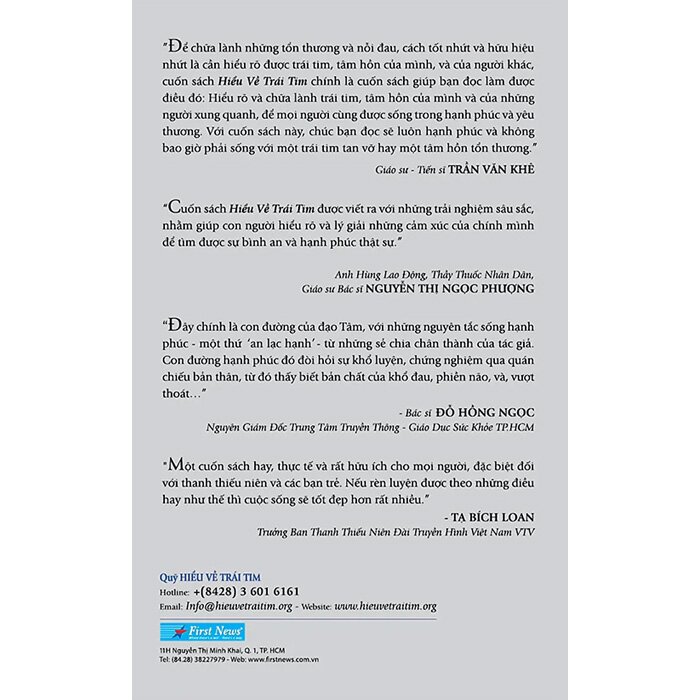 Lúc sinh thời cố Giáo sư, Tiến sĩ Trần Văn Khuê, có dịp tiếp cận với Hiểu Về Trái Tim. Ông nhận xét, như một cuốn sách đầu tiên thuộc chủ đề Hạt Giống Tâm Hồn do một tác giả Việt Nam viết, cuốn sách sẽ giúp người đọc hiểu được cảm xúc của tâm hồn, trái tim của chính mình và của người khác. Để, tận cùng là loại bỏ nỗi buồn, tổn thương và tìm được hạnh phúc trong cuộc sống. Có lẽ, vì điều này mà gần 10 năm qua, Hiểu về trái tim vẫn là cuốn sách liên tục được tái bản và chưa có dấu hiệu “hạ nhiệt”. Đáng quý hơn, tòan bộ lợi nhuận thu được từ việc phát hành cuốn sách này đều được chuyển về quỹ từ thiện cùng tên để giúp đỡ trẻ em có hoàn cảnh khó khăn, bất hạnh tại Việt Nam.