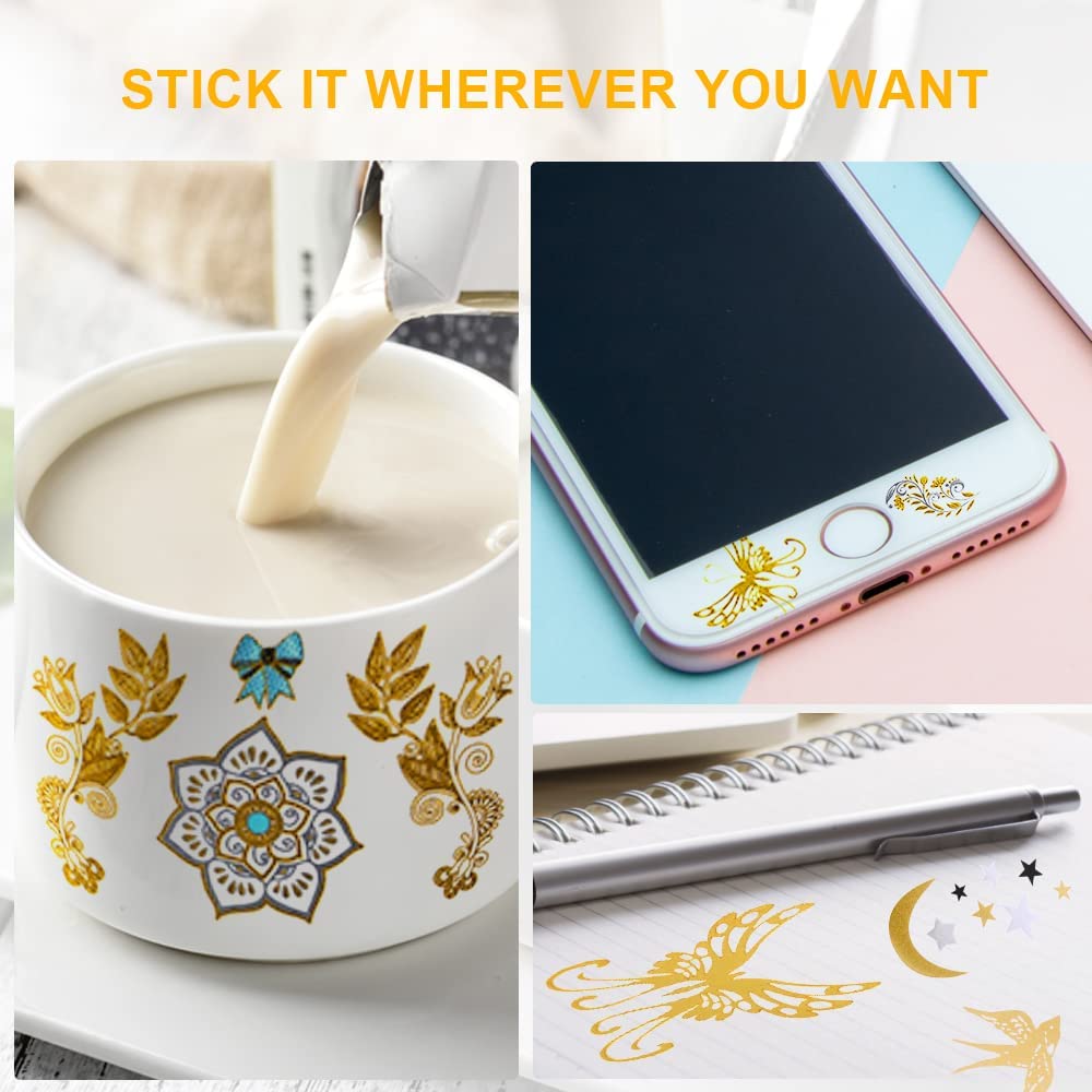 ✨Hình xăm nhũ dán ngôi sao, hoa tuyết, chiếc lá, lông vũ mặt trăng cổ tay, cổ chân tạm thời Legaxi