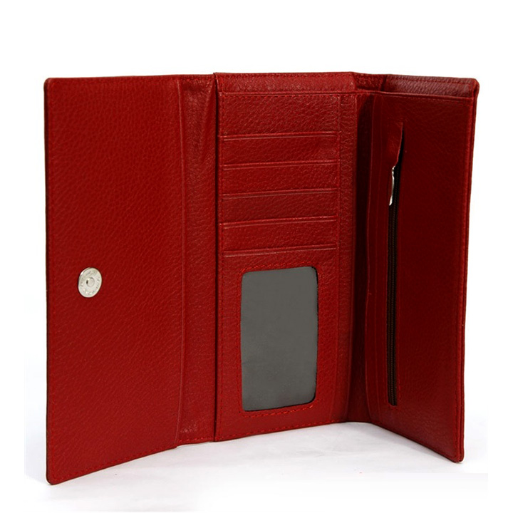 Ví/Bóp nữ da bò cao cấp Huy Hoàng 3 gấp màu đỏ 3127