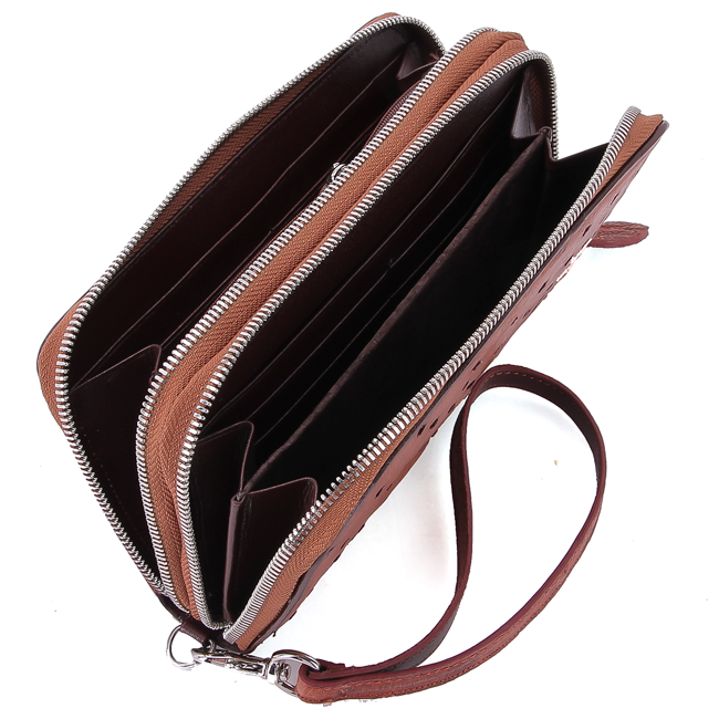 ✨HJ3440-41-42-43 - Bóp da đà điểu 2 khóa đen, nâu đỏ, vàng bò, nâu đất