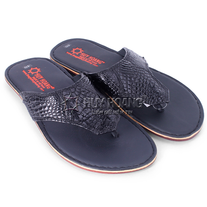 - Dép nam Huy Hoàng được làm từ chất liệu da cá sấu cao cấp nên càng sử dụng lâu bề mặt sẽ càng bóng đẹp tự nhiên. Da cá sấu mềm mại sẽ hạn