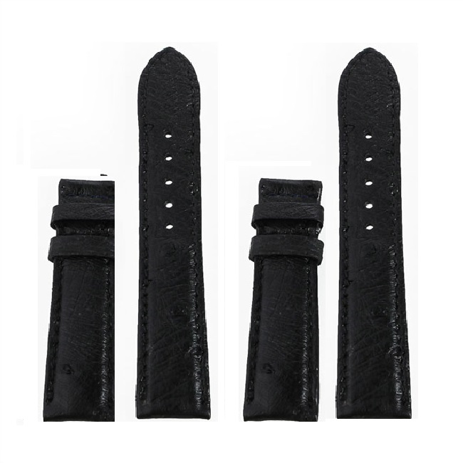Dây đồng hồ da đà điểu Huy Hoàng size 16, 18, 20 màu đen 8401