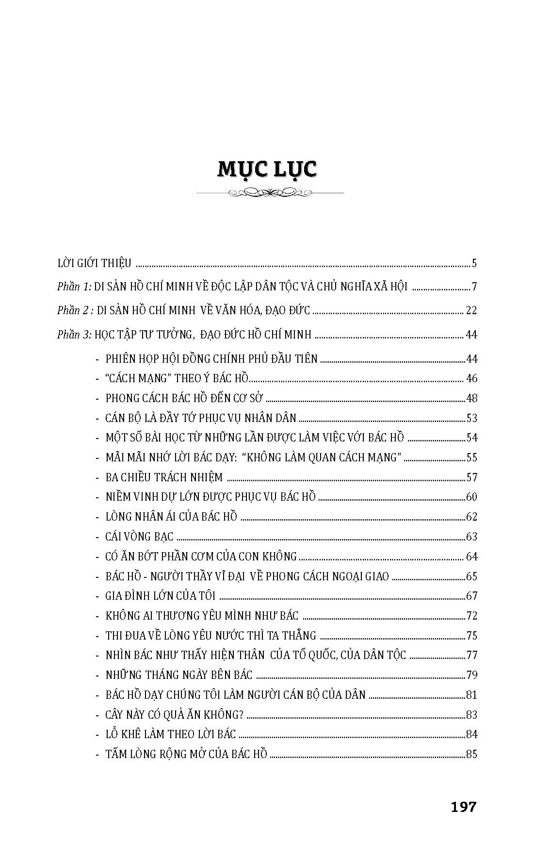 Sách nói về vị lãnh tụ kính yêu của dân tộc dưới góc nhìn gần gũi, thân thương. Mặc dù bám theo trình tự biên niên, sách vẫn cố gắng tổ chức theo các lĩnh