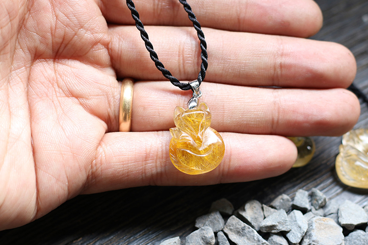 Mặt dây chuyền nữ hoàng hồ ly thạch anh tóc vàng - Hợp mệnh kim, mệnh thủy | Ngọc Quý Gemstones |