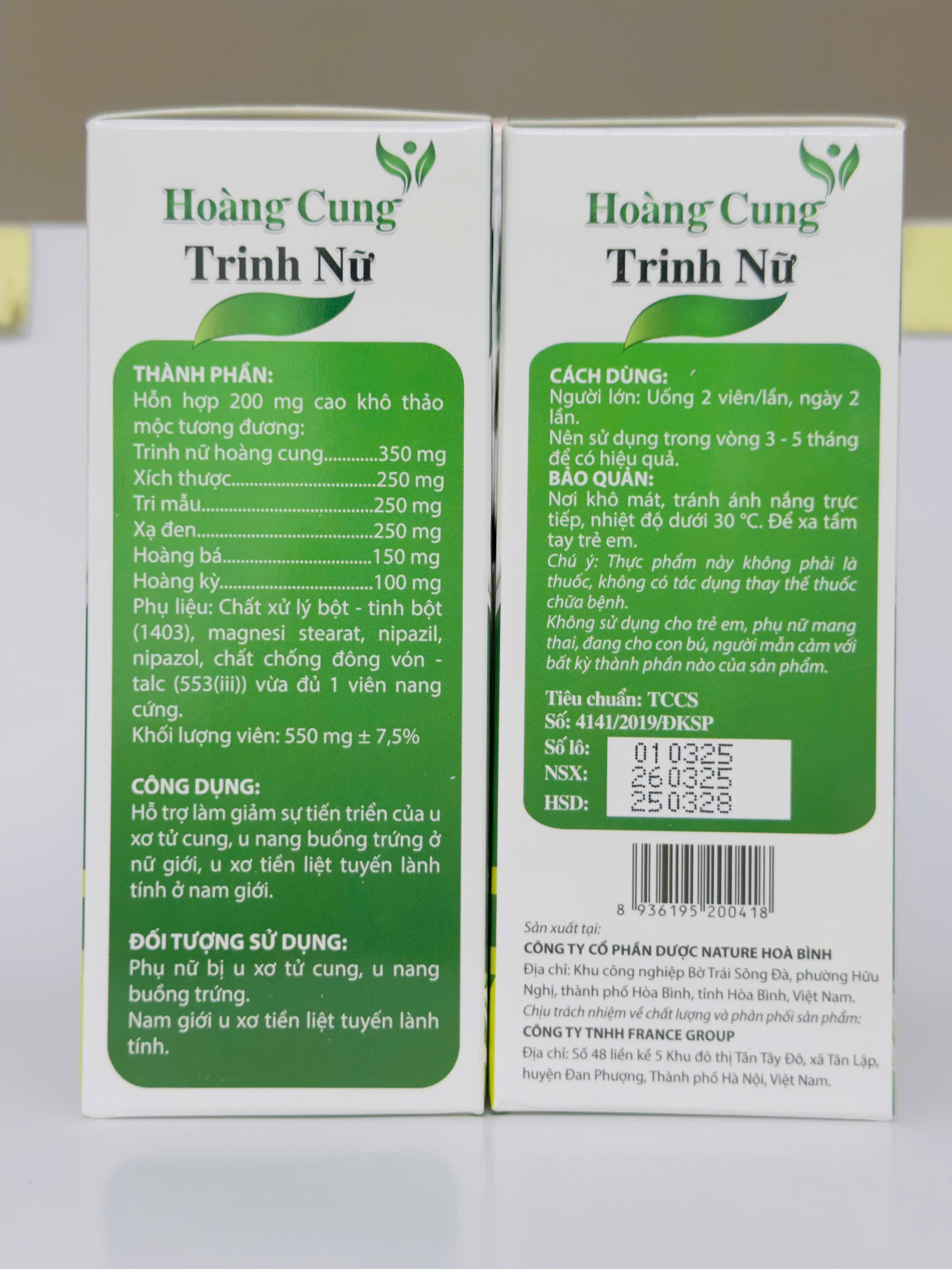 THÀNH PHẦN: hỗn hợp 200 mg cao khô thảo mộc tương đương : • Cao Trinh nữ hoàng cung (Crinum latifolium) 350 mg • Cao Xạ đen 250 mg • Tri mẫu : 250 mg • Xích thước : 250 MG • Hoàng bá :150 mg  • Hoàng kỳ : 100 MG • Phụ liệu: Lactose, Tinh bột ngô, Natri starch glycolat, Magnesi stearat, Aerosil. .. CÔNG DỤNG: • Giúp tăng cường sức đề kháng, tăng khả năng miễn dịch của cơ thể • Hỗ trợ  phòng ngừa các bệnh: U xơ tuyến vú, u xơ tử cung, u nang buồng trứng, rối loạn kinh nguyệt đối với phụ nữ • Hỗ trợ phòng ngừa u xơ tuyến tiền liệt ở nam giới    ĐỐI TƯỢNG SỬ DỤNG: • Người bị suy giảm khả năng miễn dịch • Người bị phì đại tuyến tiền liệt lành tính, tiểu tiện khó khăn • Người bị u xơ tử cung, u nang buồng trứng, u xơ tuyến vú, rối loạn kinh nguyệt     QUY CÁCH SẢN PHẨM: • Hộp 1 lọ x 50 viên   HẠN SỬ DỤNG:  • Xem trên bao bì sản phẩm