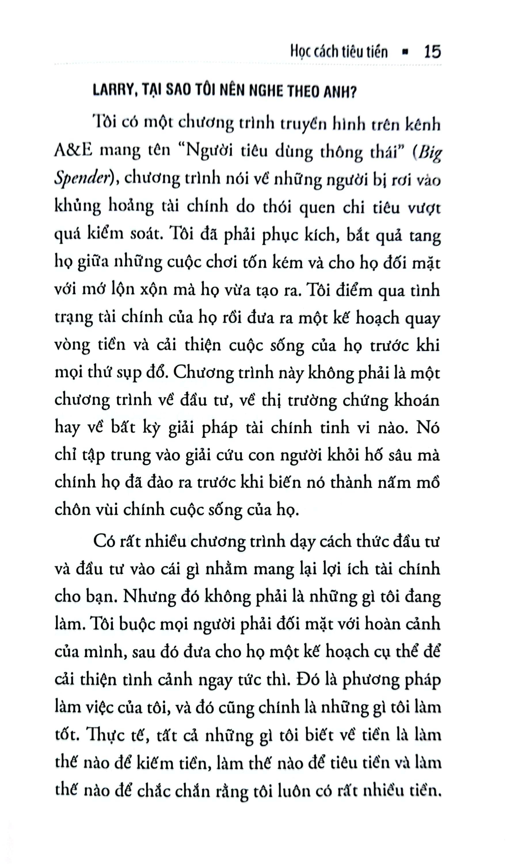 Ông chỉ ra rằng chính cách chi tiêu cùng lối suy nghĩ của mọi người về vấn đề tiền bạc, chứ không phải nguyên nhân nào khác, đã khiến họ lâm vào tình cảnh “cháy túi” và nợ nần chồng chất.