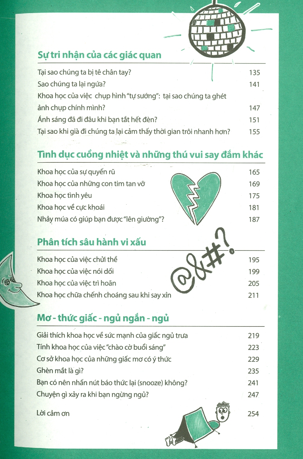 Tại sao chúng ta ghét ảnh chụp chính mình? Khoa học của việc “chào cờ buổi sáng” là gì? Khi tắt đèn, ánh sáng đã đi đâu? Tại sao khi thất tình thì “con tim tan vỡ”? Tại sao bạn dường như không thể dừng lại việc trì hoãn? "Từ mẹo chữa nấc cụt cho đến quy tắc năm giây, cuốn sách này đã mang lại nụ cười thích thú trên khuôn mặt tôi và trả lời những câu hỏi kỳ quặc của cuộc sống. Một cuộc dạo chơi ngông nghênh qua những điều bí ẩn và cấm kỵ, được dẫn dắt bởi khoa học đằng sau đó”.