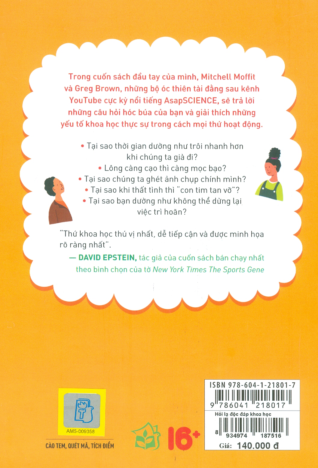 Trong cuốn sách đầu tay của mình, Mitchell Moffit và Greg Brown, những bộ óc thiên tài đằng sau kênh YouTube cực kỳ nổi tiếng AsapSCIENCE, sẽ trả lời những câu hỏi hóc búa của bạn và giải thích những yếu tố khoa học thực sự trong cách mọi thứ hoạt động. Tại sao thời gian dường như trôi nhanh hơn khi chúng ta già đi? Lông càng cạo thì càng mọc bạo?