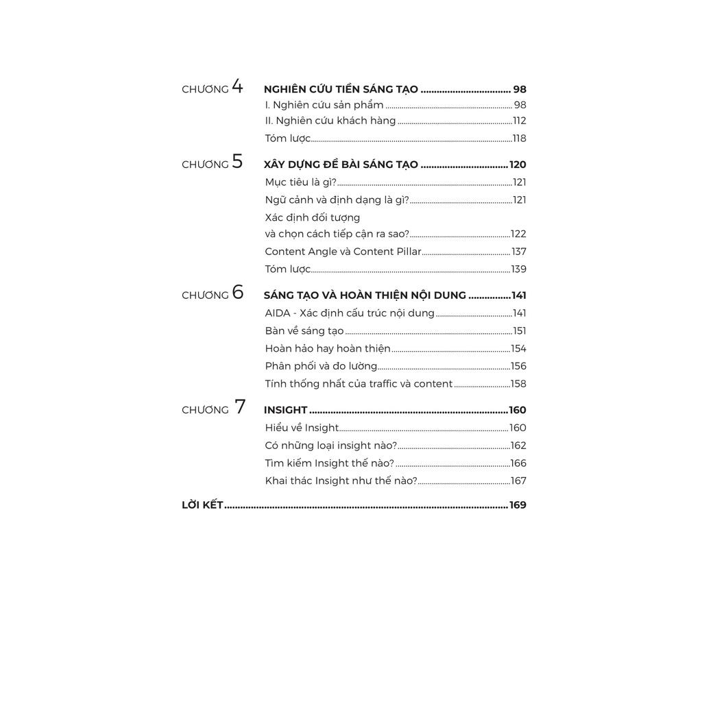 Tác giả cung cấp 8 tiêu chí phân loại content, giúp độc giả có một cái nhìn đủ rộng, để từ đó bắt đầu hành trình vào nghề một cách nhanh nhất. Tác giả cũng phân tích hành trình làm nghề điển hình mà các “con Sen” đều trải qua, chỉ ra những cạm bẫy và trở ngại cũng như các “góc khuất nhận thức” cản trở quá trình học hỏi của người làm nghề.