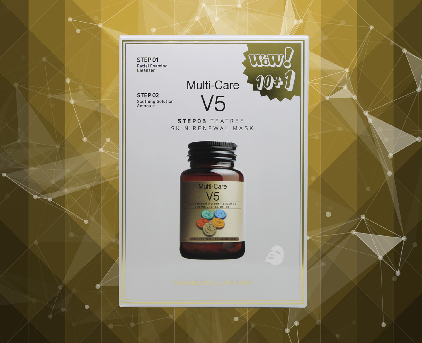 Hộp mặt nạ Trị Mụn, Kiềm Dầu, Dưỡng Ẩm, Nâng Cơ Mặt 3 Bước Rainbow L'affair Multi - Care V5 Teatree Cleanser:
