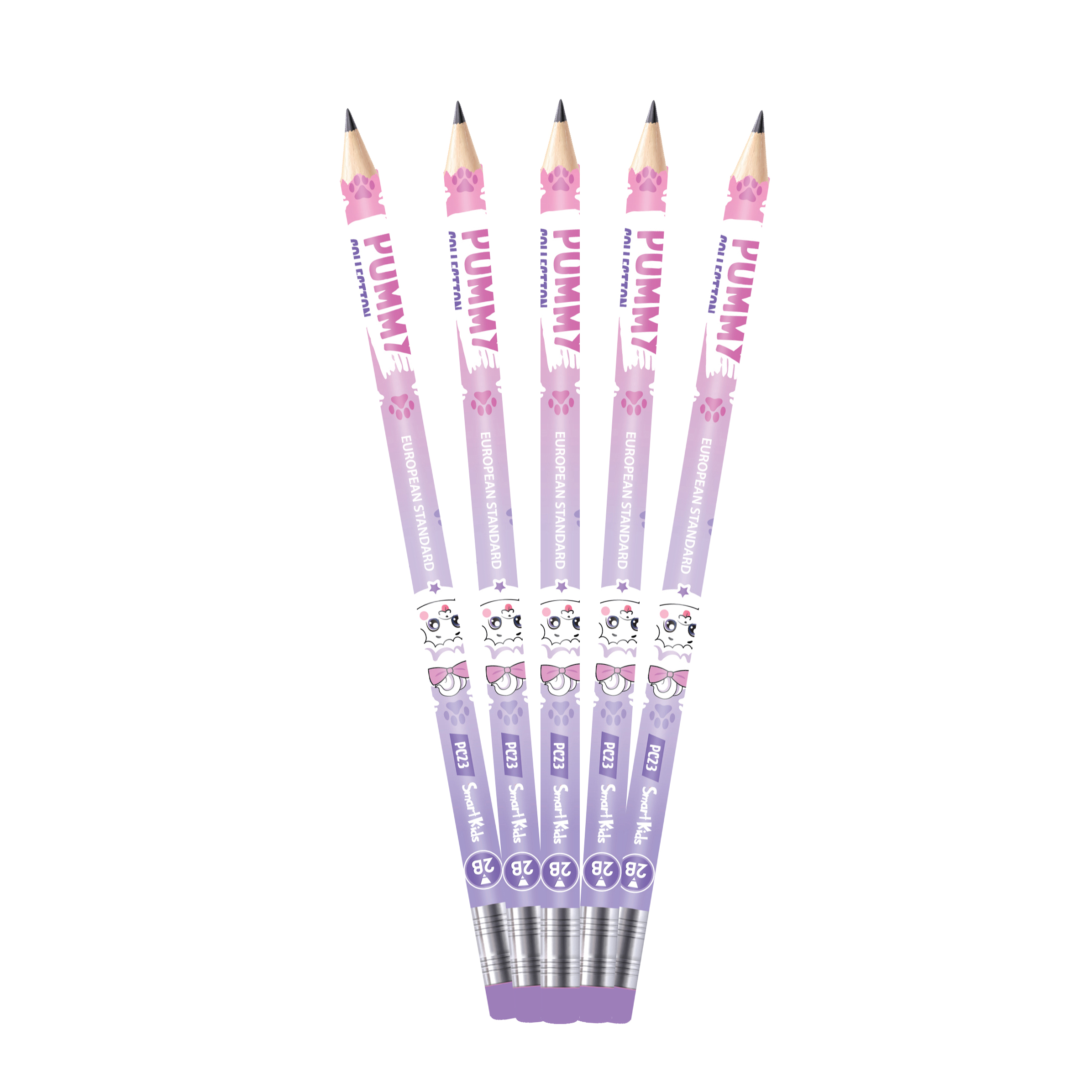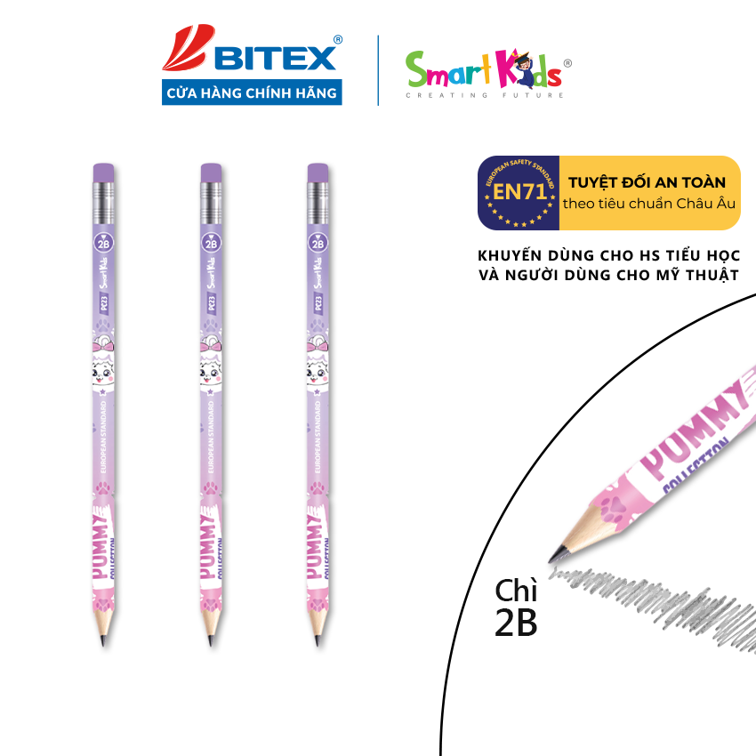 Bút chì đen 2B Pommy Collection Smart Kids PC23 (12 cây/hộp) - Ruột bút chì chất lượng, gỗ mềm dễ chuốt, thân in hình bắt mắt, có gôm tiện dụng. - Thân tam giác dễ