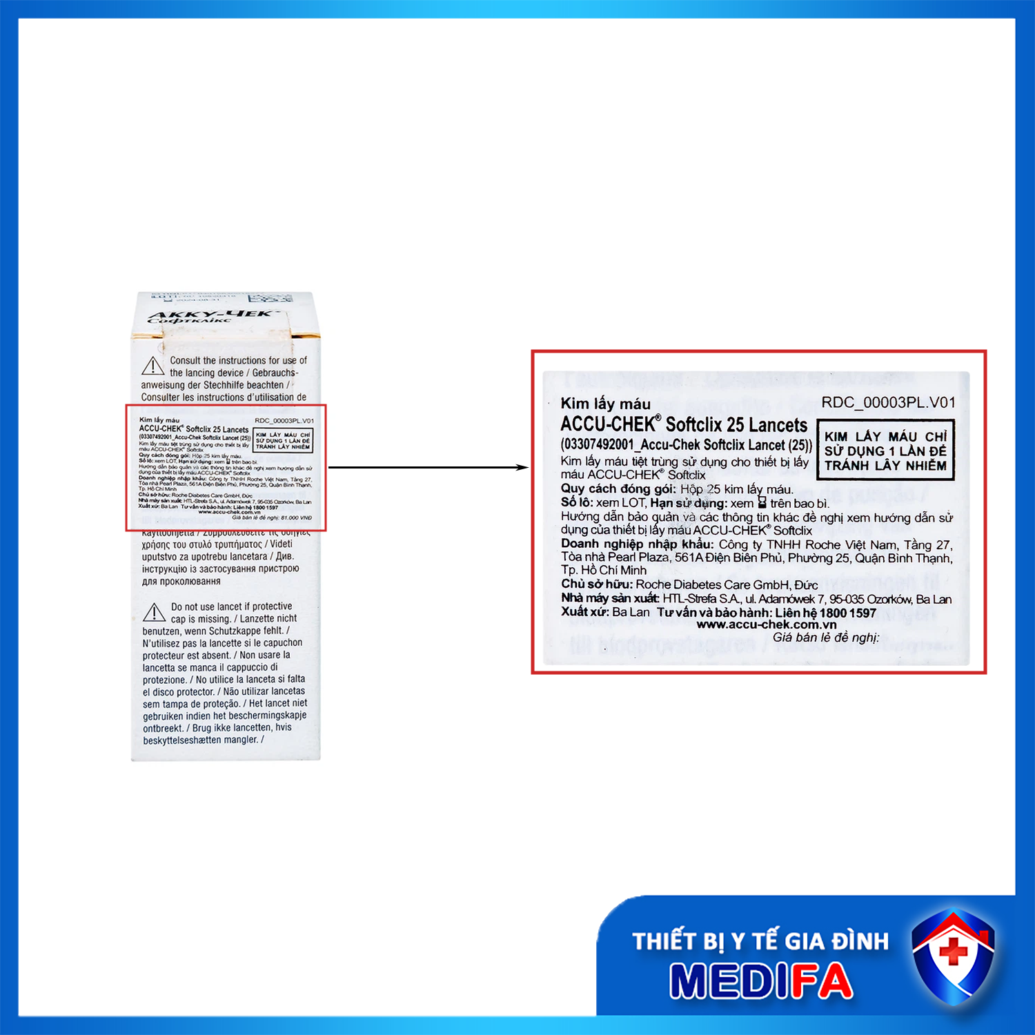 - Loại kim chích máu: Accu Chek Soft Clix.