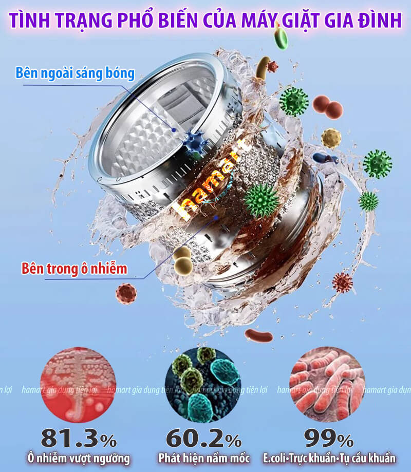 • Tẩy sạch mạnh mẽ: loại bỏ cặn bột giặt, dầu mỡ, nấm mốc tích tụ lâu ngày trong lồng giặt.