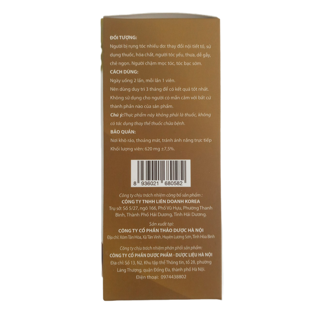 1. THÀNH PHẦN: Cho 1 viên Cao Hà thủ ô đỏ:....200mg L-Cystine: ..100mg Vitamin B5: .5mg Vitamin B6: 1 mg Vitamin H(D-Biotin):..250mcg 2. CÔNG DỤNG: Hỗ trợ đen tóc đối với người tóc bạc sớm,