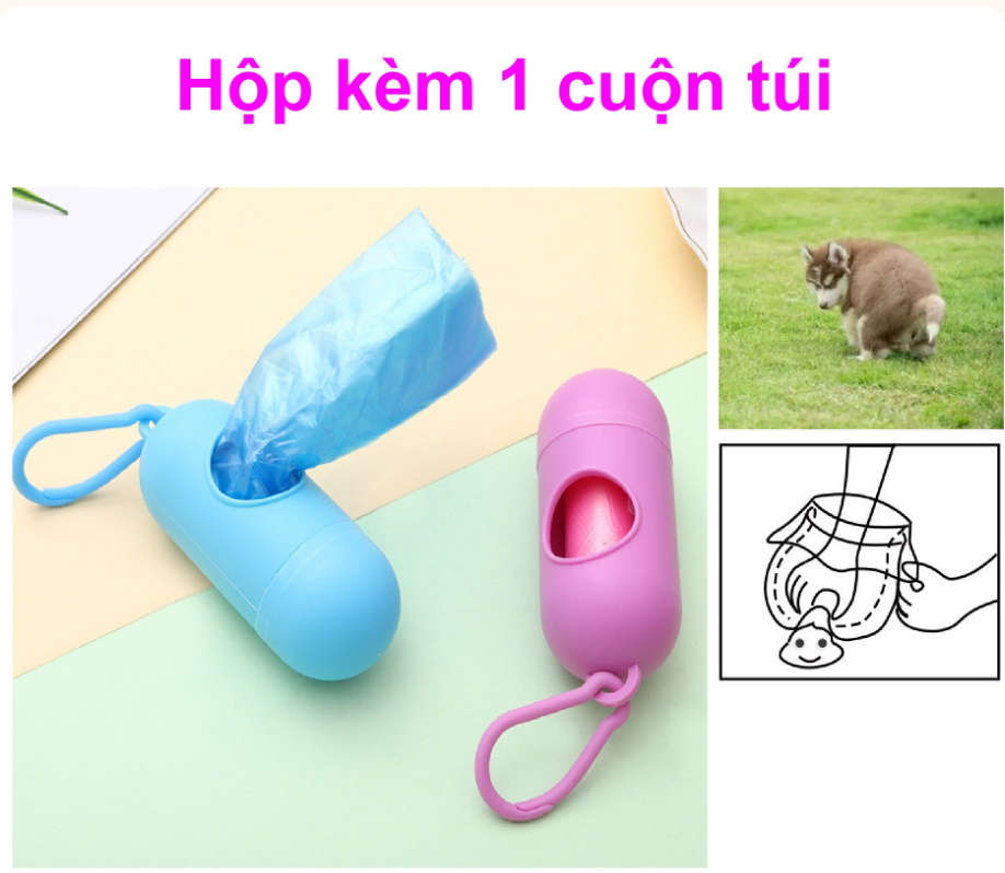 - Gồm 1 Hộp Đựng Túi Hót Phân Cho Chó Mèo kèm 1 cuộn túi đựng rác