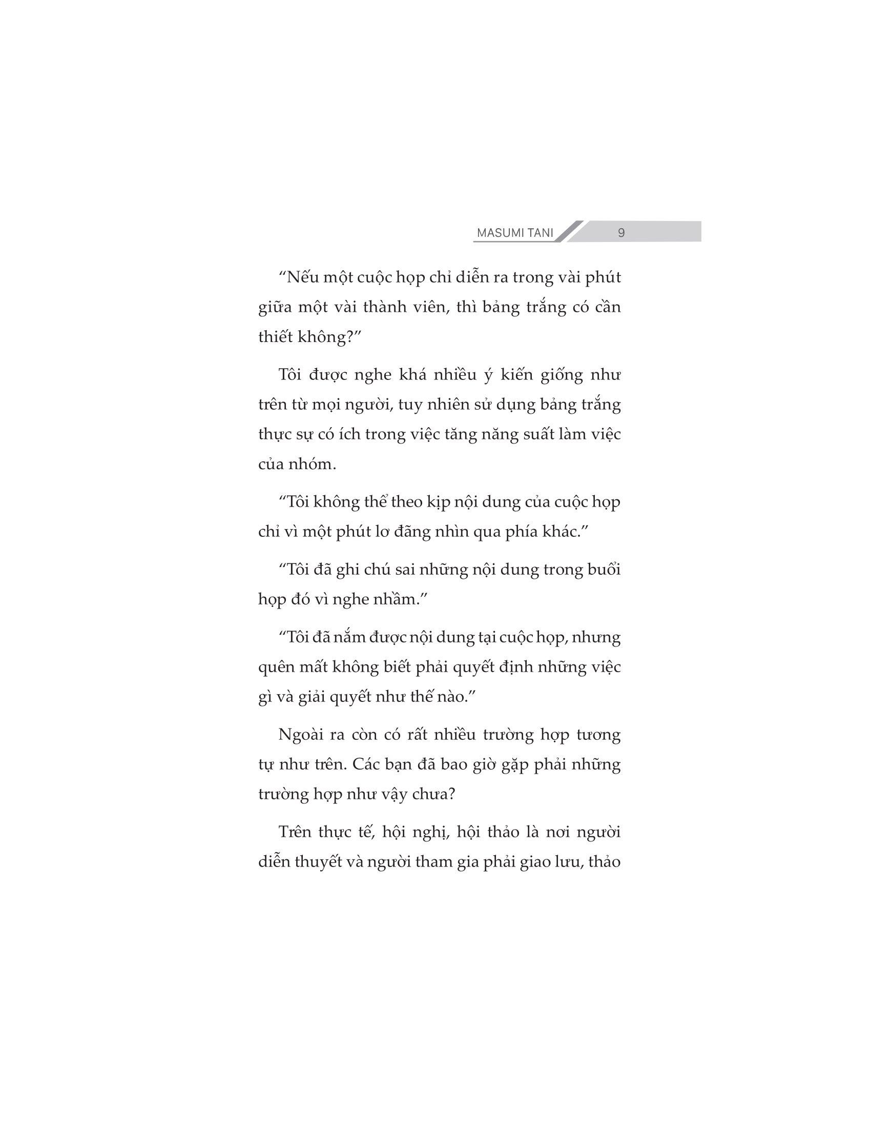 Họp Ít - Làm Nhiều Tại những công ty, doanh nghiệp hiện đại ngày nay, các thành viên thường tập hợp thành một đội, cùng nhau hợp tác thực hiện một dự án và tạo ra kết quả. Vì vậy, việc phải họp để đưa ra ý tưởng, hướng phát triển và các giải pháp nhằm giải quyết các vấn đề cấp bách, chắc chắn là việc không thể tránh khỏi. Tuy nhiên, trên thực tế, các cuộc họp, hội nghị, hội thảo – nơi người diễn thuyết và người tham gia phải giao lưu, thảo luận và hiểu lẫn nhau – lại tiềm ẩn rất nhiều điều ngoài ý muốn có thể xảy ra. Bạn đã từng gặp phải thực trạng: