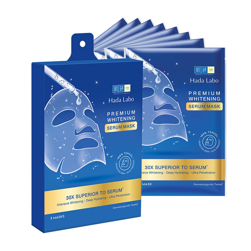 Hộp mặt nạ tinh chất dưỡng trắng cao cấp Hada Labo Premium Whitening Mask Box (115g/5 miếng) Mặt nạ dưỡng trắng chuyên sâu Hada Labo cung cấp dưỡng chất gấp 30 lần tinh chất dưỡng/