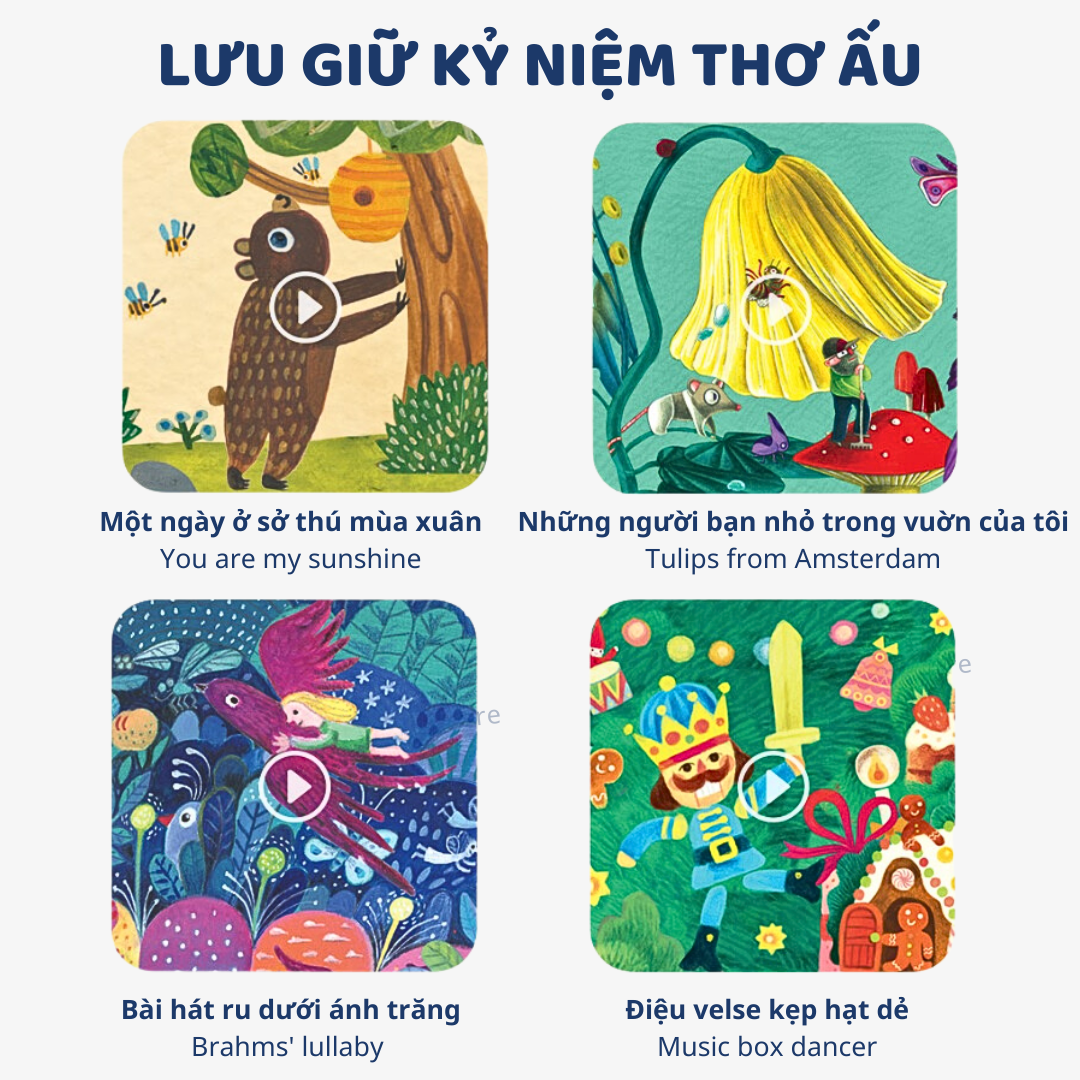 - Gợi nhớ những giai điệu cổ điển trên thế giới. Ký ức hoài niệm cho người lớn và lưu giữ những kỷ niệm đặc biệt của thời ấu thơ.