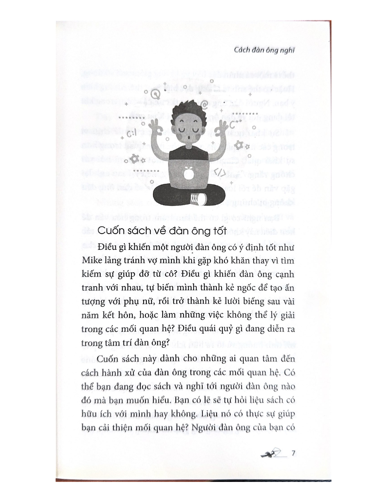 - Giới thiệu Một trong những chân lý cuộc sống là cả đàn ông và phụ nữ đều hoang mang về suy nghĩ của nhau, và thường có một danh sách dài các thắc mắc dành cho đối phương. Tuy nhiên, nhìn chung, cả hai giới đều muốn hướng đến một mối quan hệ hòa hợp - đặc biệt là khi có sự lãng mạn liên quan. Cách đàn ông nghĩ không phải là cuốn sách khuyên đàn ông nên giống phụ nữ như thế nào mà chỉ nói về cách đàn ông thực sự suy nghĩ như thế nào, và phụ nữ có thể sử dụng hiểu biết này để có được những gì họ cần từ mối quan hệ của họ.