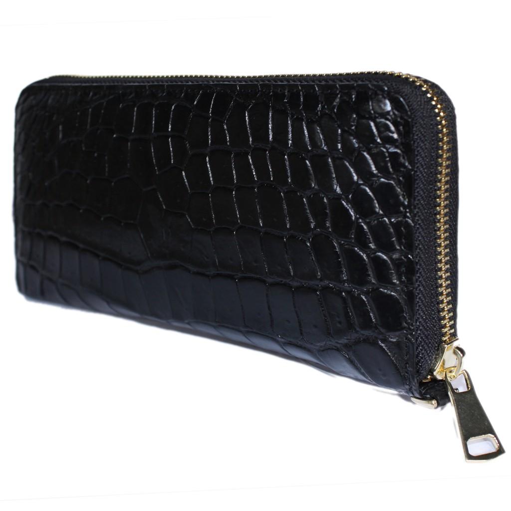 ✨HP3742 - Ví nữ da cá sấu Huy Hoàng 1 khóa nguyên con bụng màu đen